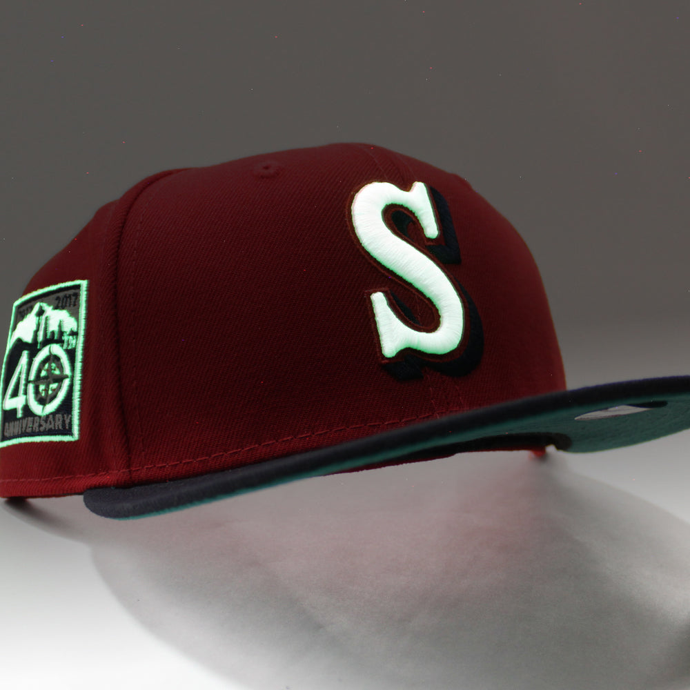 Seattle Mariners 40th Anniversary New Era 59Fifty Fitted Hat (GITD Red Navy Aqua Under Brim)