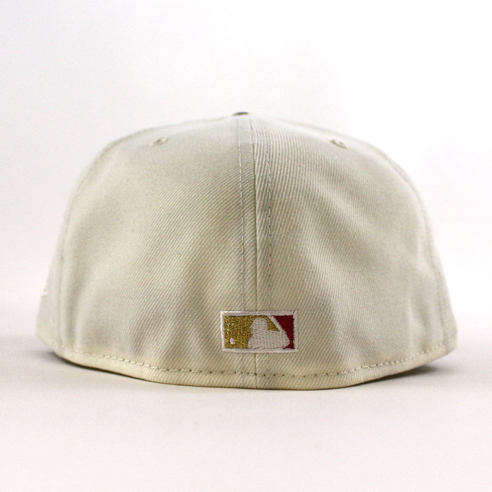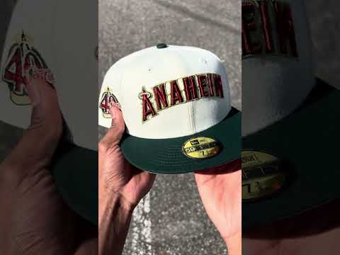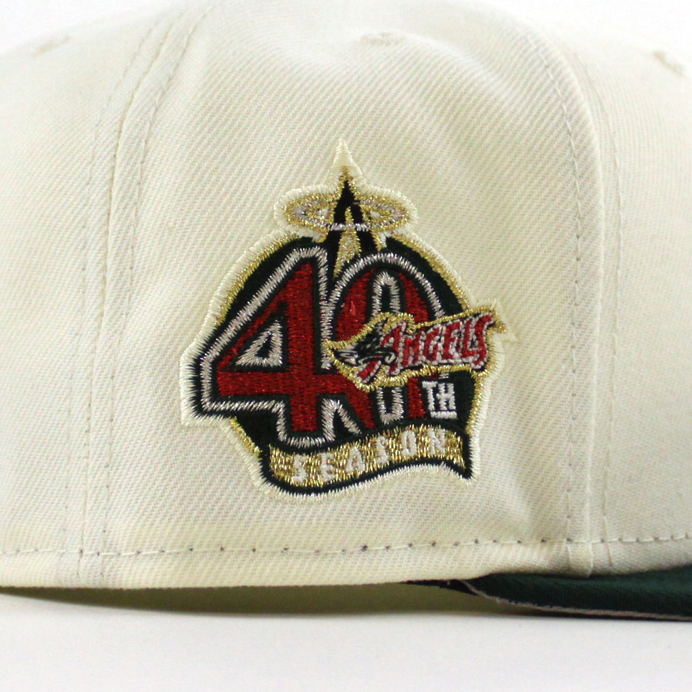 Anaheim Angels 40th Season New Era 59Fifty Fitted Cap in Chrome White, Green and Gray Under Brim.