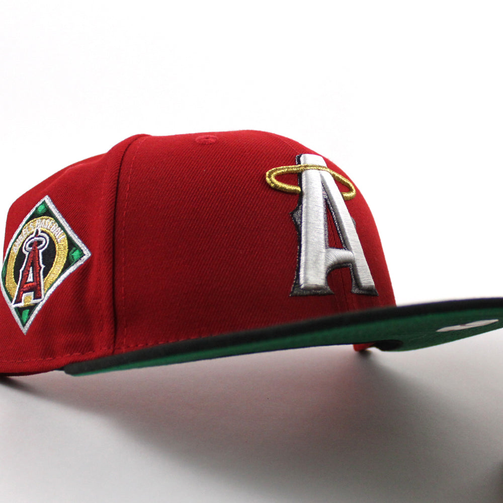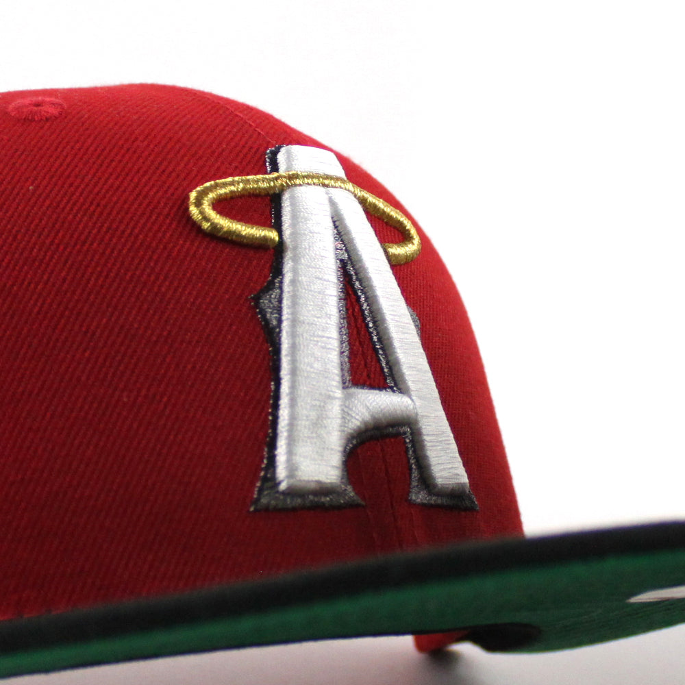 Anaheim Angels Angles BaseBall New Era 59Fifty Fitted Hat (Scarlet Red Black Green Under Brim)