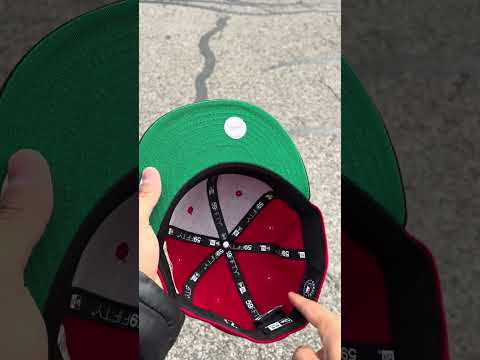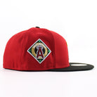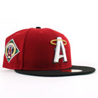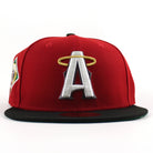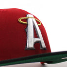 Anaheim Angels Angles BaseBall New Era 59Fifty Fitted Cap in Scarlet Red, Black and Green Under Brim.