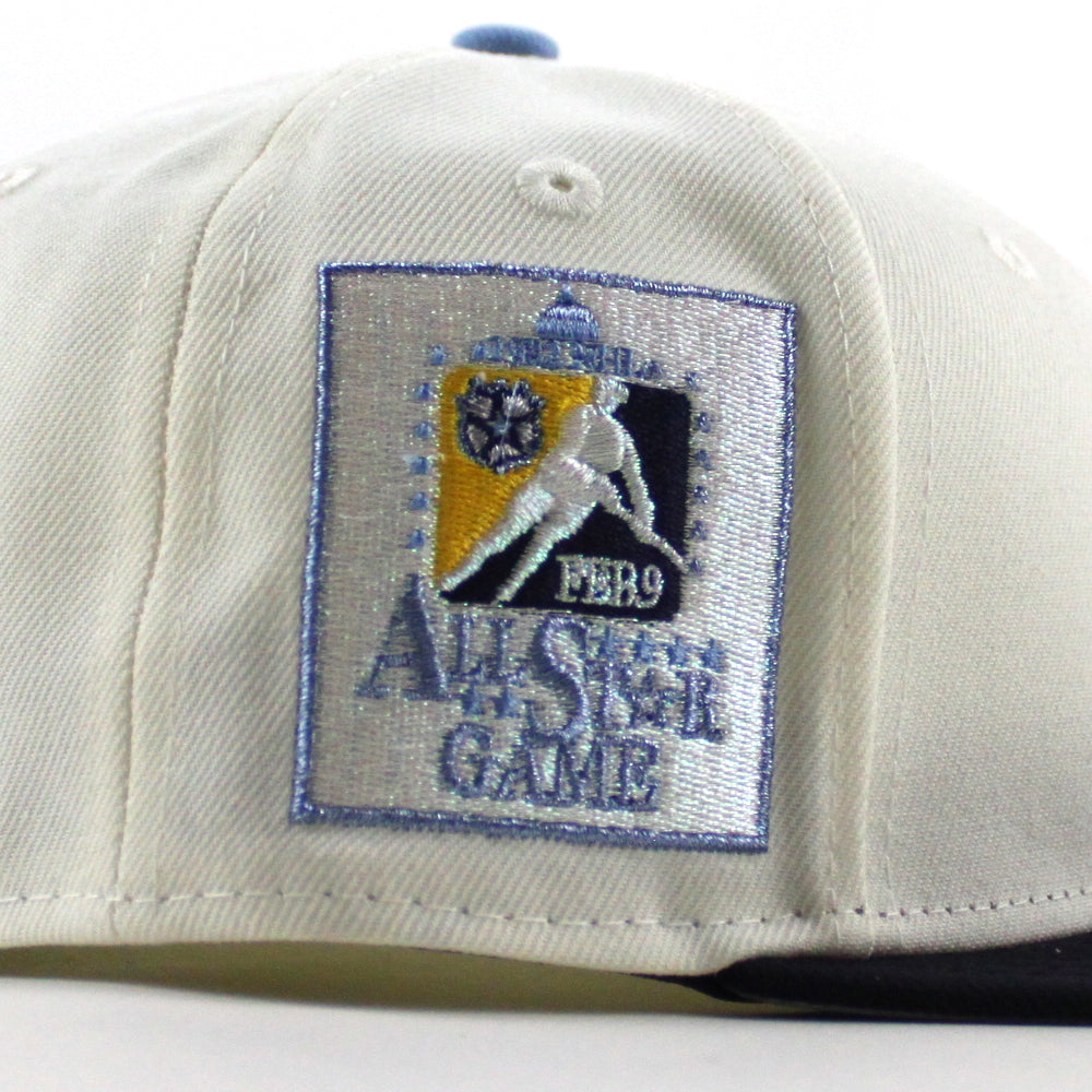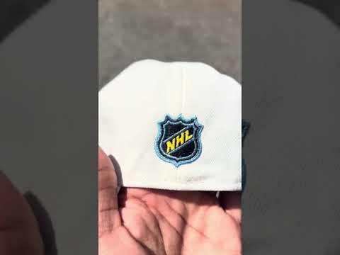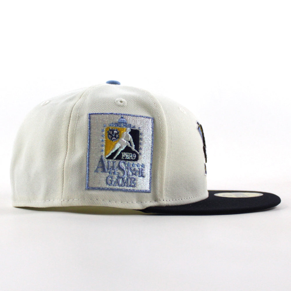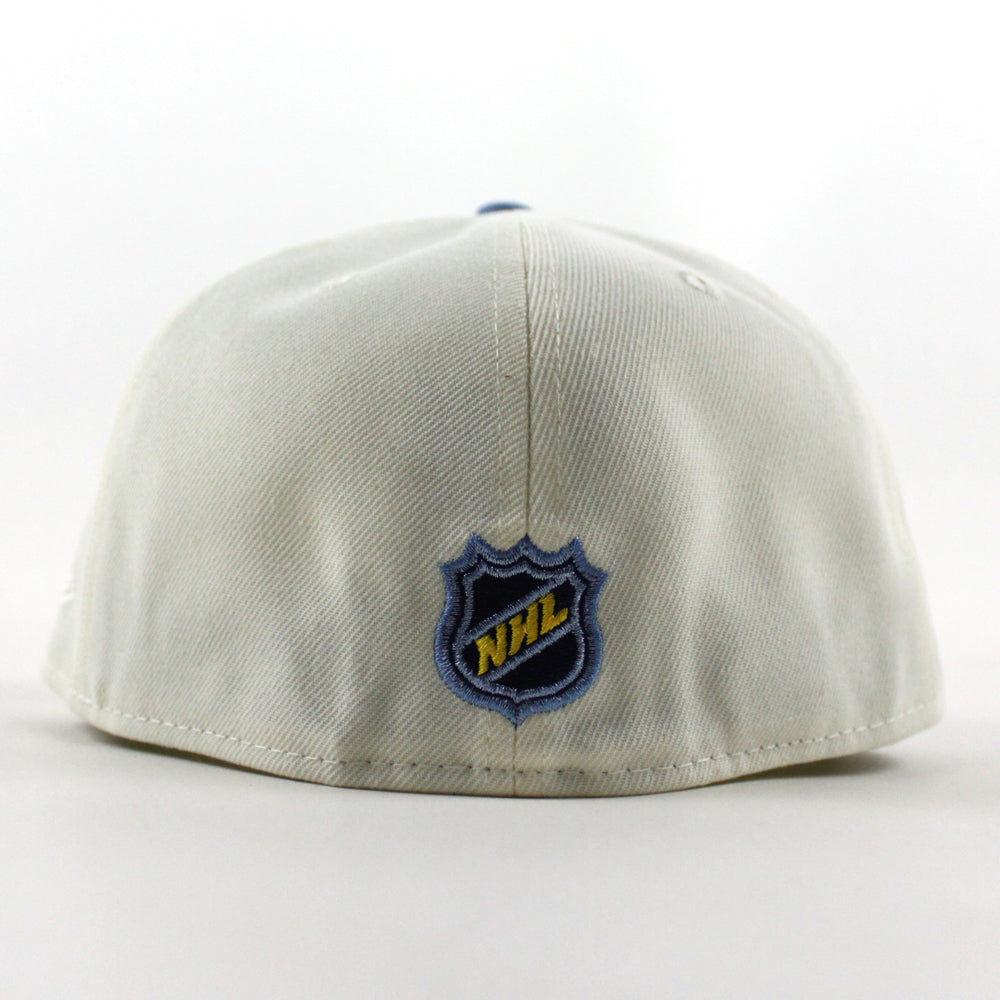 Anaheim Ducks 25 Years New Era 59Fifty Fitted Hat in Chrome White, Navy and Gray Under brim.