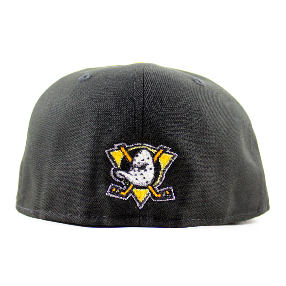 Anaheim Ducks A Mighty Decade 1993 New Era 59Fifty Fitted Hat in Black and Gray Under brim.