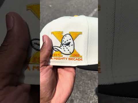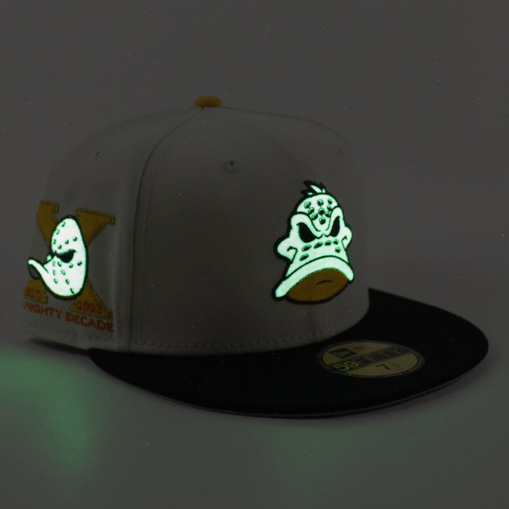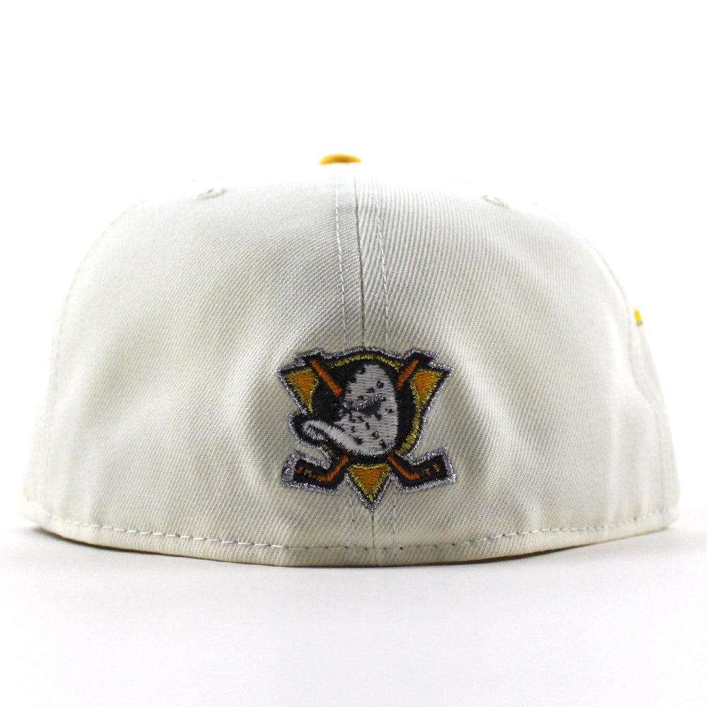 Anaheim Ducks A Mighty Decade 1993 New Era 59Fifty Fitted Hat in Chrome White, Black and Gray Under brim.