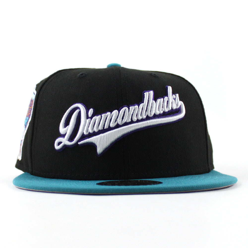 Arizona Diamondbacks 1998 Inaugural Season New Era 59Fifty Fitted Hat in Black, Aqua and Gray Under Brim.