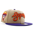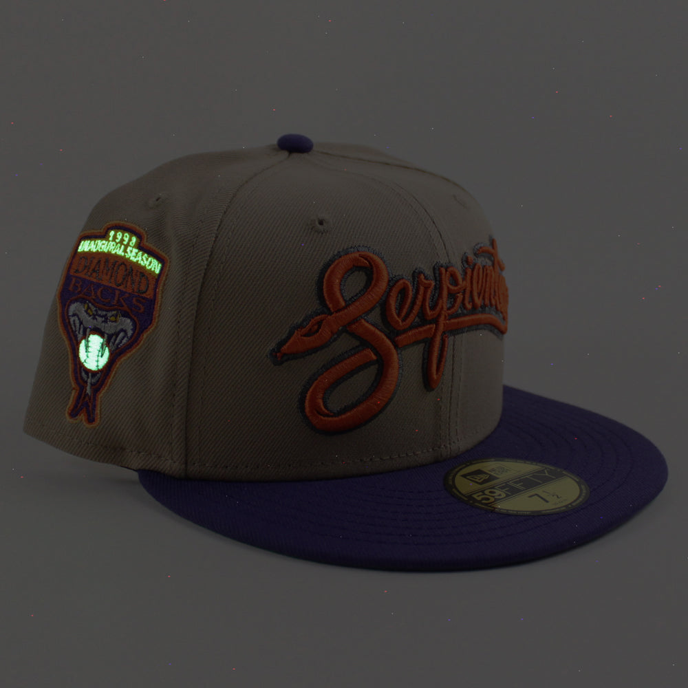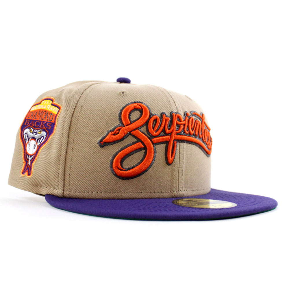 Arizona Diamondbacks 1998 Inaugural season New Era 59Fifty Fitted Hat in Camel, Orchid and Green Under Brim.