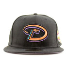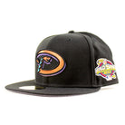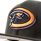 Arizona Diamondbacks New Era 59Fifty Fitted hat is done in the old school team colors of Black Metallic Copper and Purple with a Gray under brim, White inside lining and 2001 World Series Side Patch. This was the first World Series ever played in the state of Arizona and the Mountain Time Zone. With the All-Star Game format change in 2003, the World Series would not open in the city of the National League champion again until 2010. This was the last World Series not to feature a wild card team until 2008. This was also the first World Series to end in November, due to the delay in the regular season after the September 11 attacks. With the win by the Diamondbacks, the franchise became the first World Series champions from a Far West state other than California and the first major professional sports team to win a title in the State of Arizona. Randy Johnson and Curt Schilling were the co-MVPs of the 2001 World Series, combining for a 4–0 record and a 1.40 ERA and striking out 45 Yankees in 38 2⁄3 innings.
