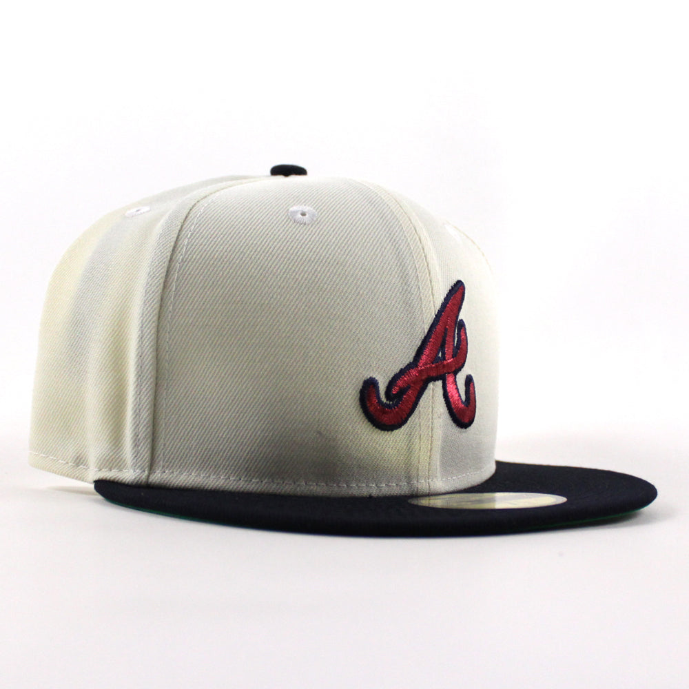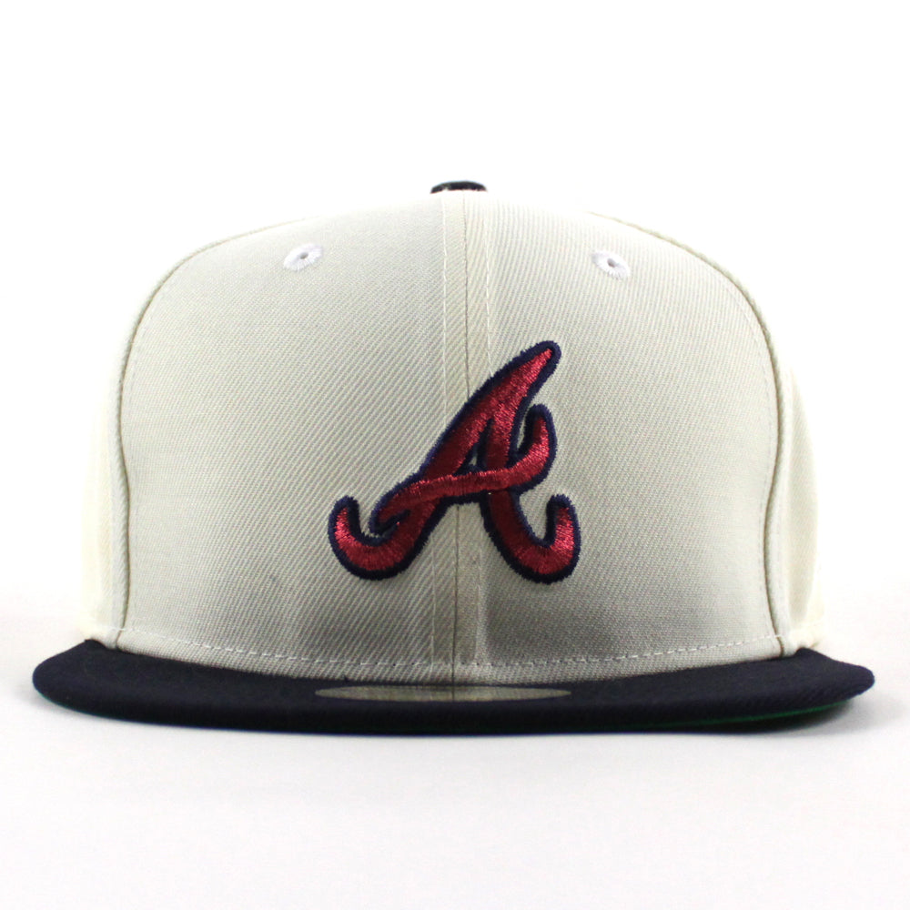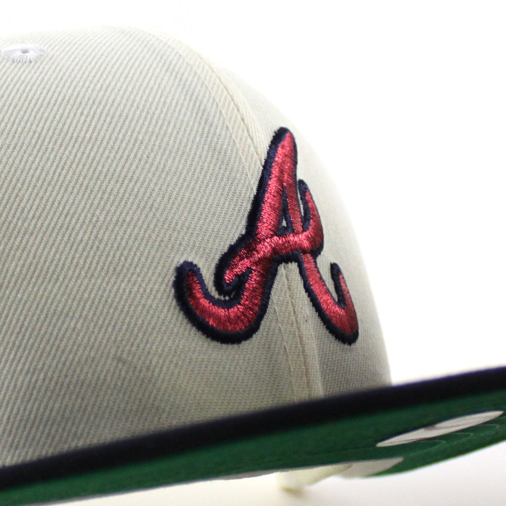 Atlanta Braves 40th ANNIVERSARY New Era 59Fifty Fitted Hat in Chrome White, Navy and Green Under Brim