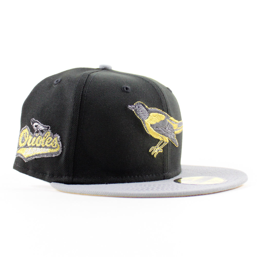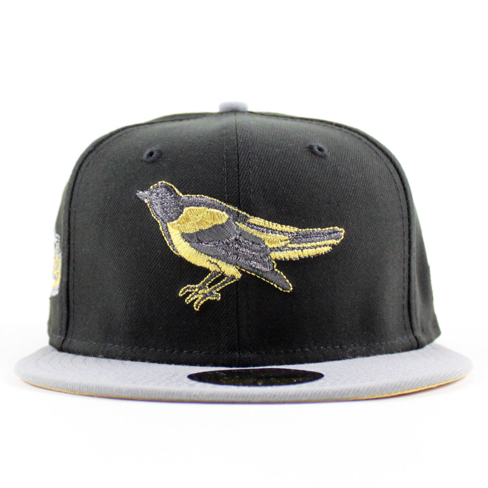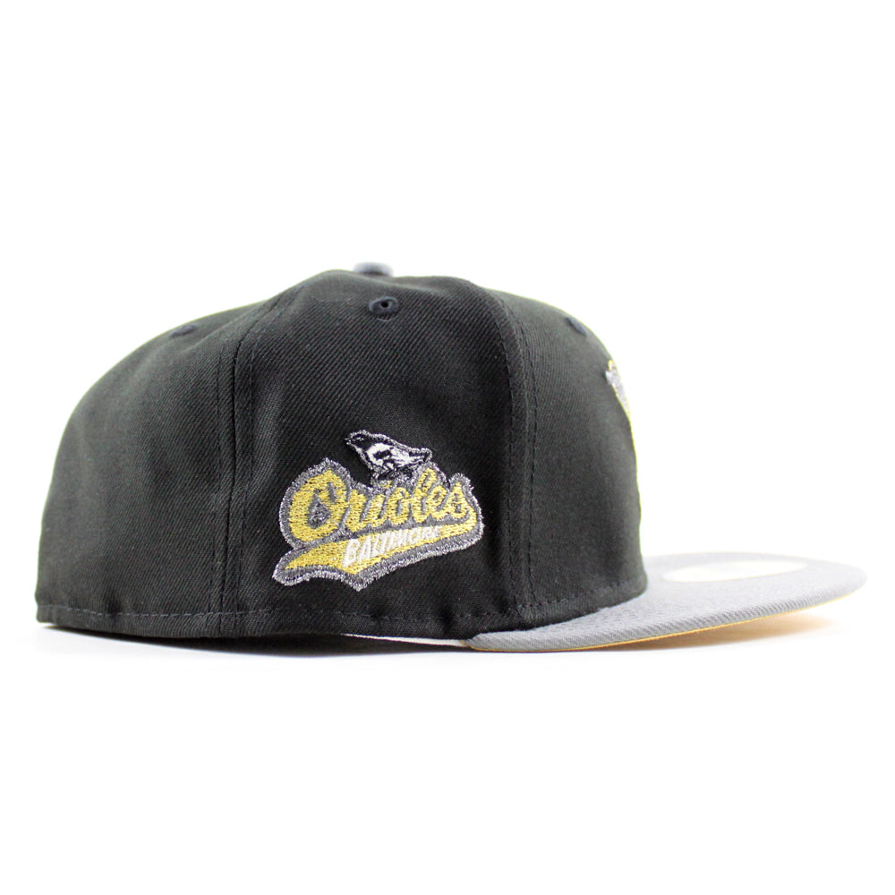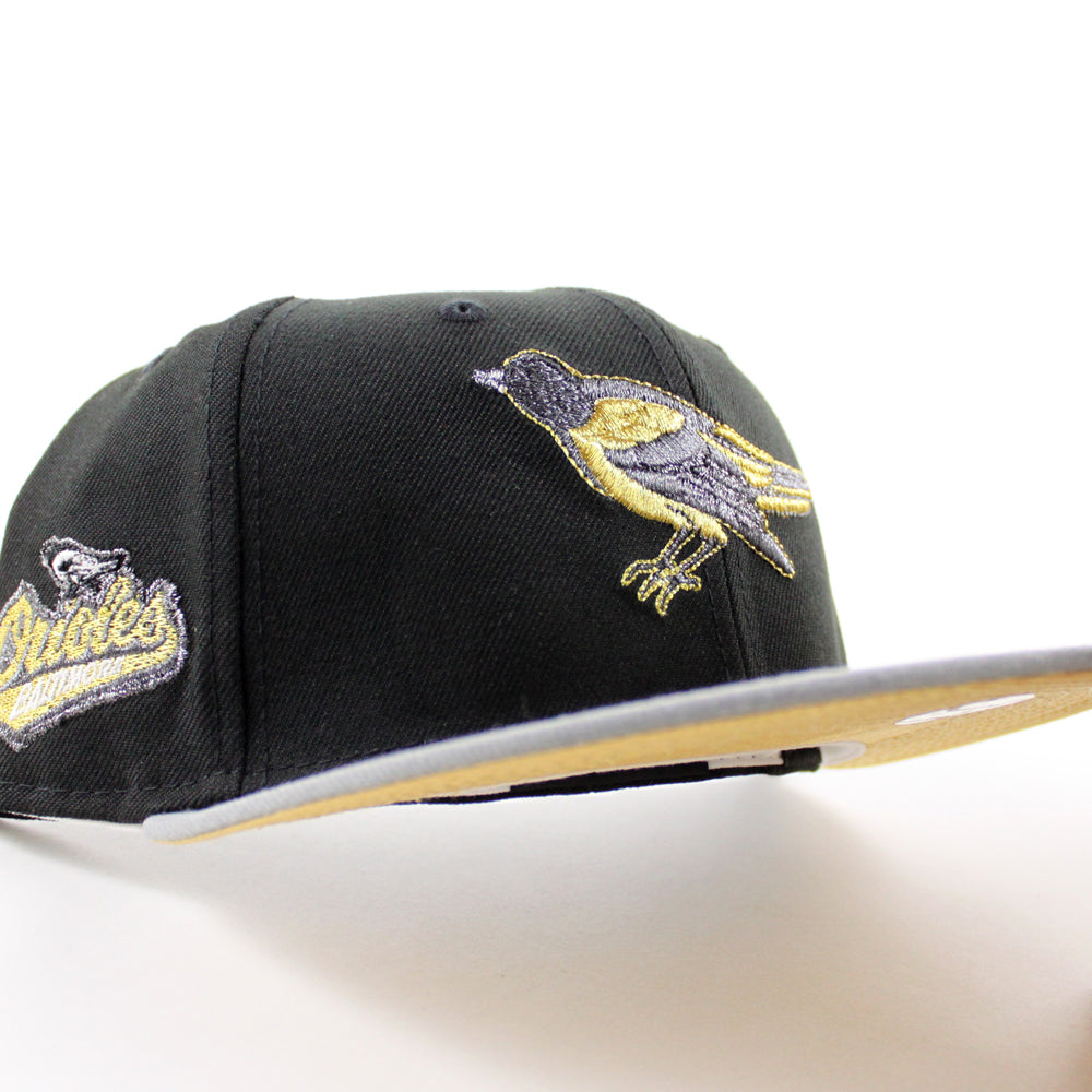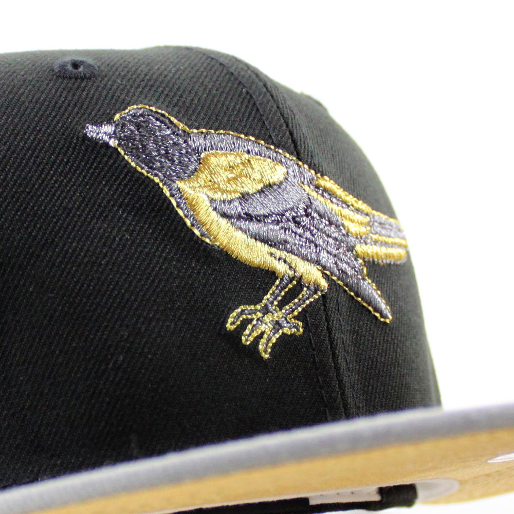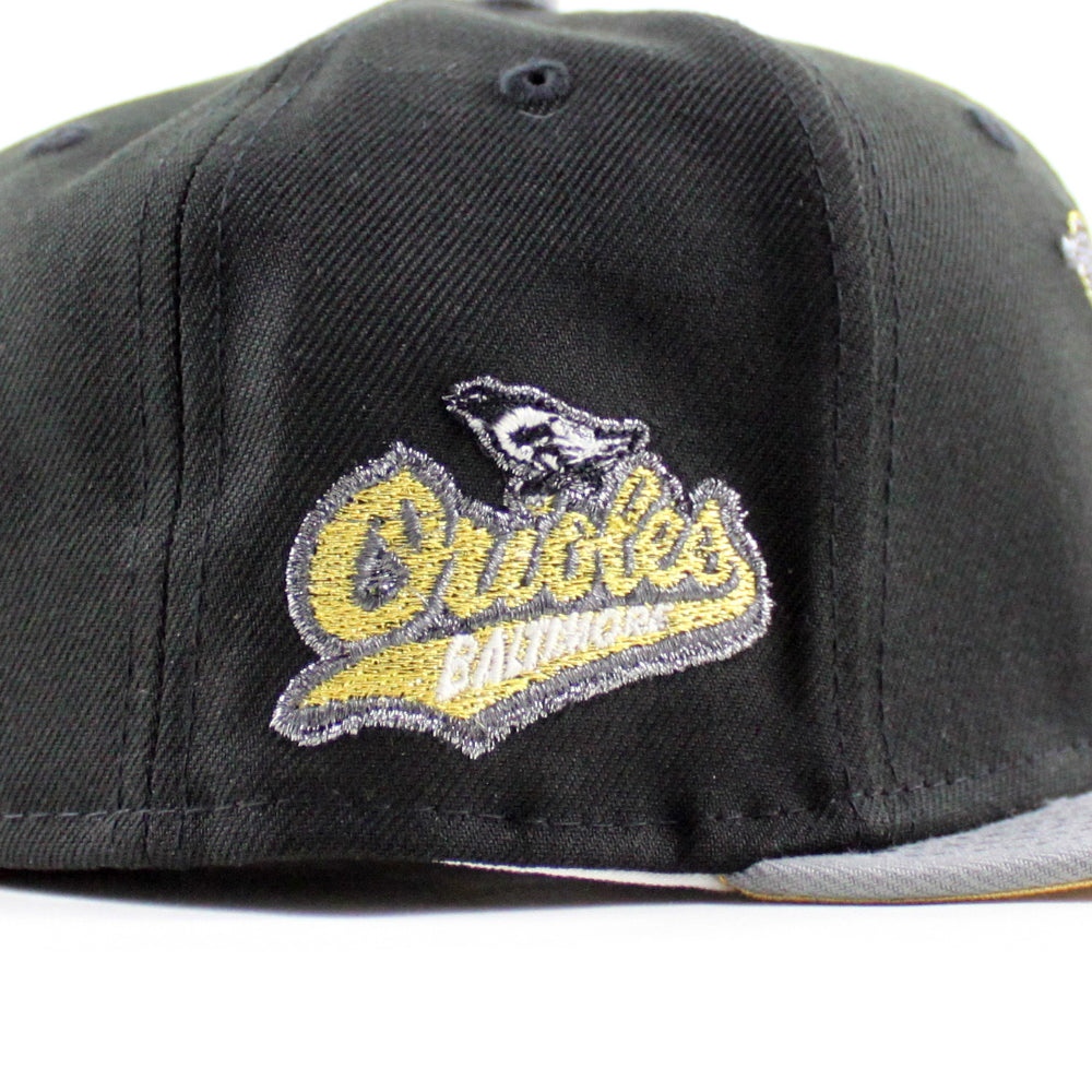 Baltimore Orioles 1992 - 1994 59Fifty New Era Fitted Cap in Black, Misty Morning and Metallic Gold Under Brim.