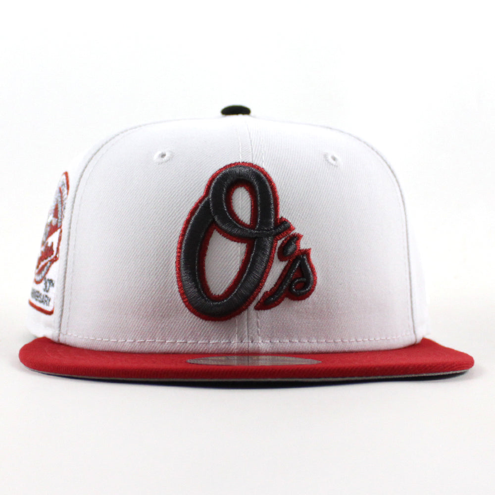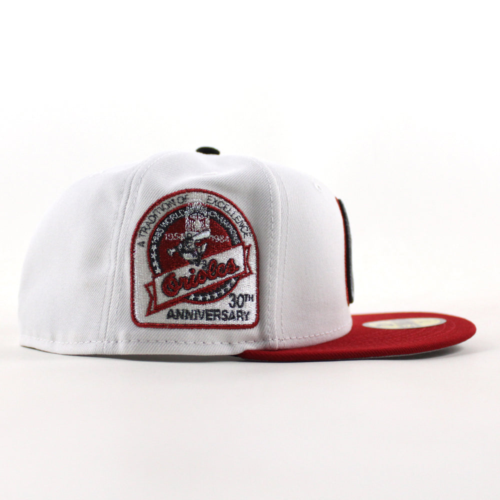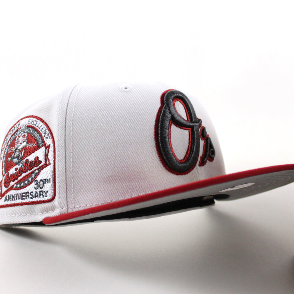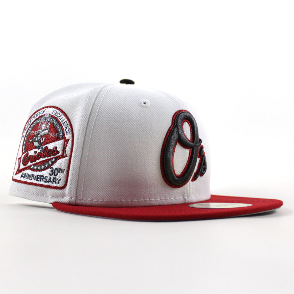 Baltimore Orioles 30th Anniversary A Tradition Of Excellence 59Fifty New Era Fitted Hat (White Scarlet Red Gray Under Brim)