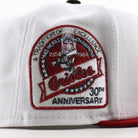 Baltimore Orioles 30th Anniversary A Tradition Of Excellence 59Fifty New Era Fitted Cap in White, Scarlet Red and Gray Under Brim.