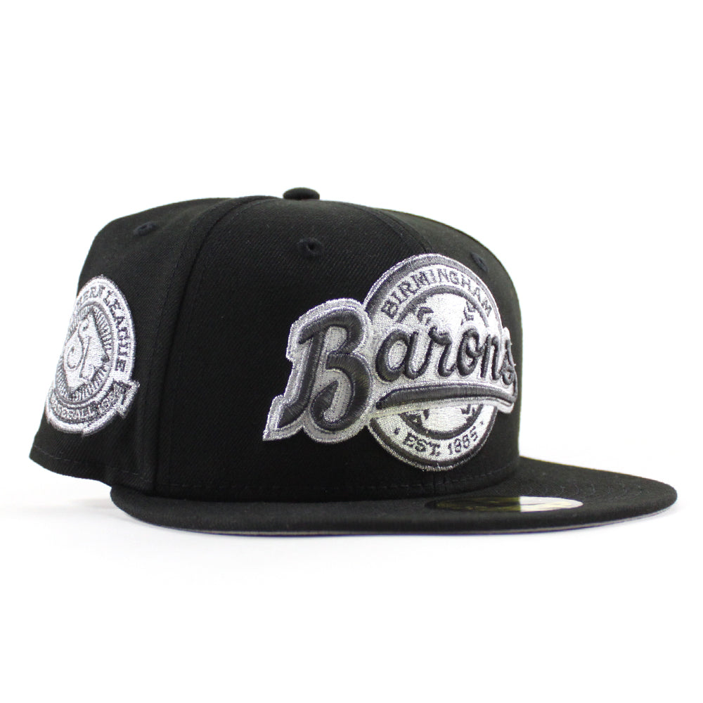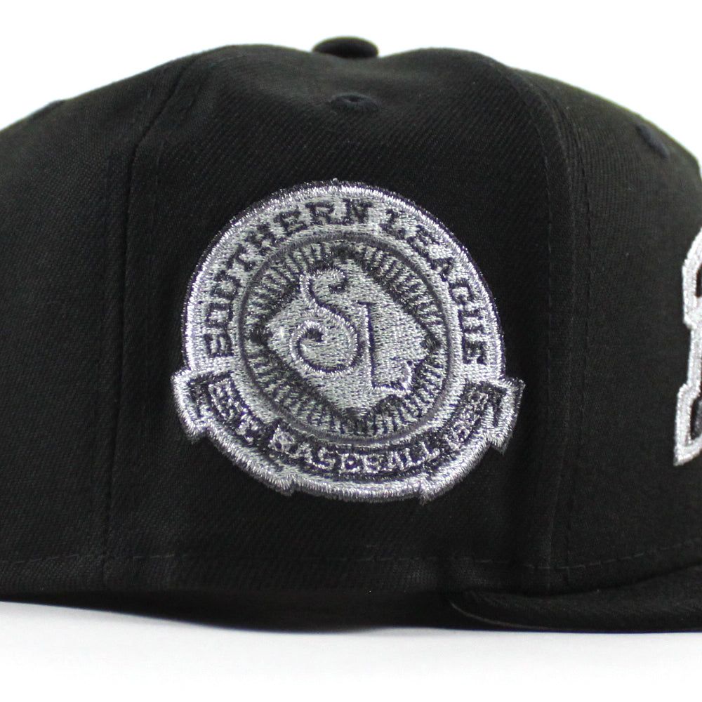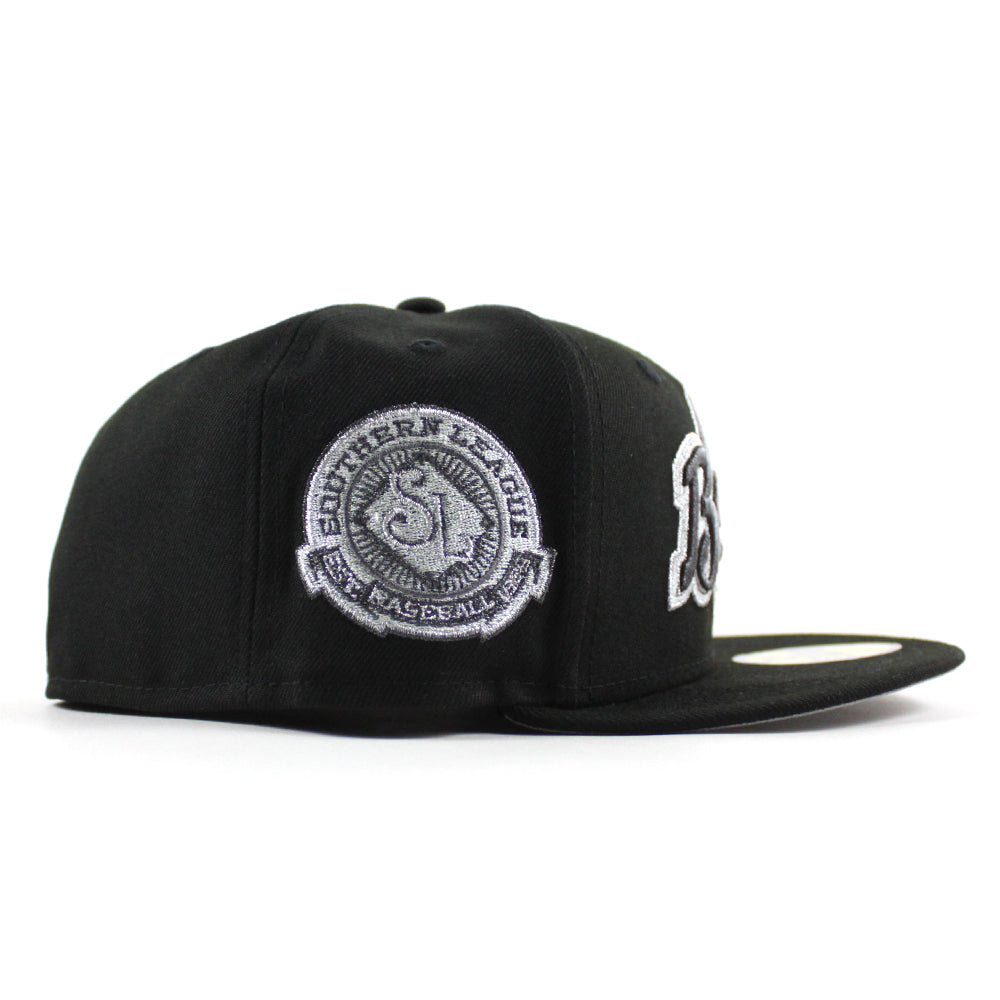 BIRMINGHAM BARONS Southern League New Era 59Fifty Fitted Hat in Black and Gray Under Brim.