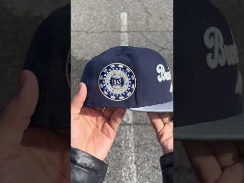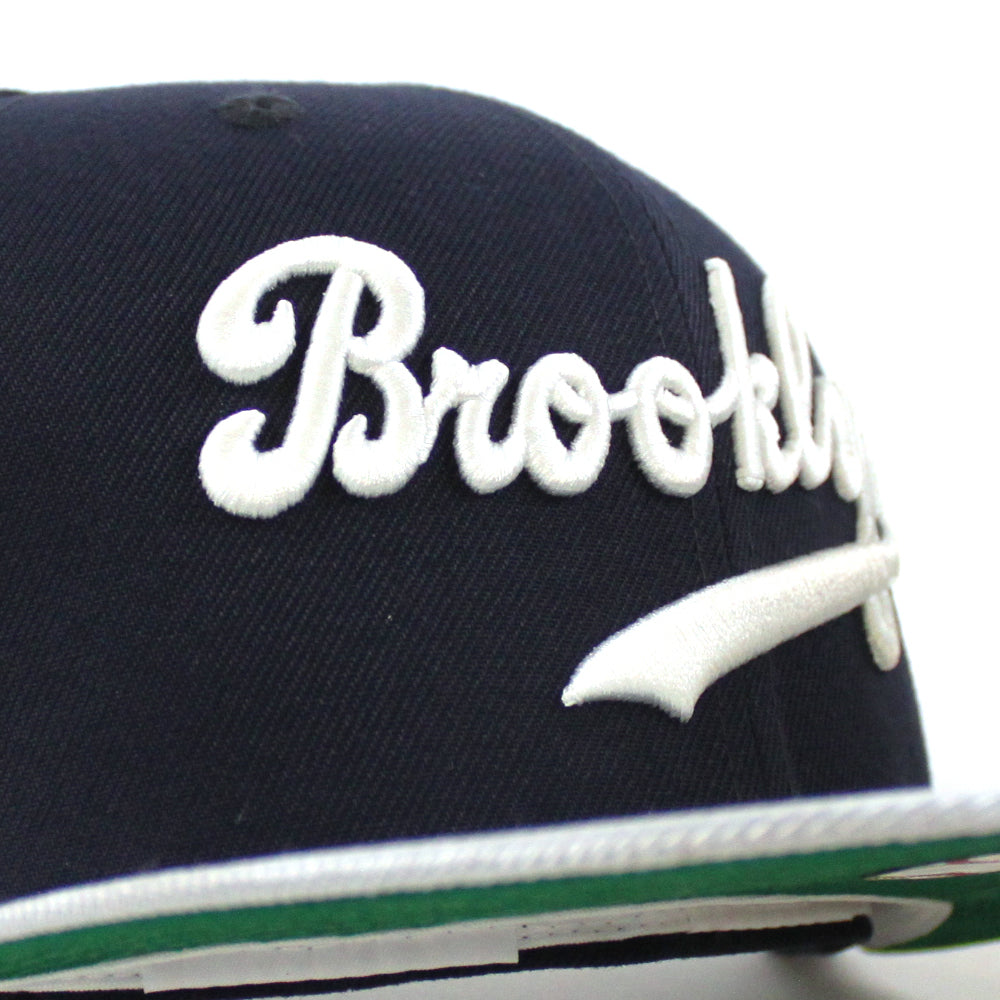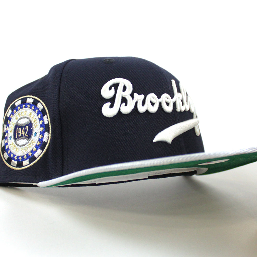 Brooklyn Dodgers 1942 All Star Game 59Fifty New Era Fitted Hat in Navy Blue, Metallic Green Under Brim.
