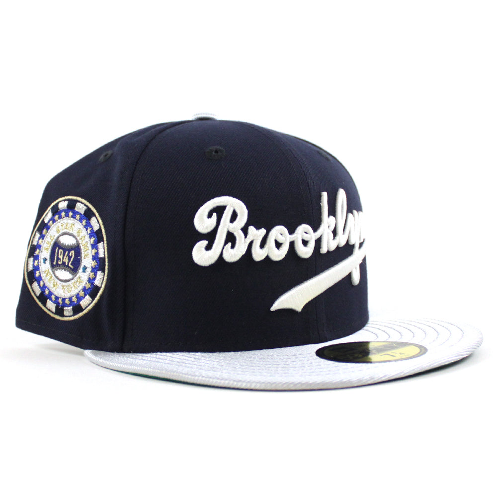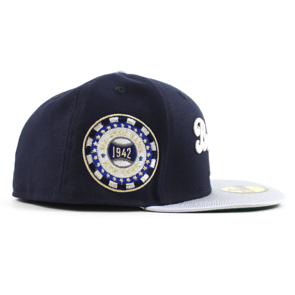 Brooklyn Dodgers 1942 All Star Game 59Fifty New Era Fitted Hat (Navy Blue Gray Metallic Green Under Brim)