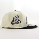 Baseball Buffalo Bisons BUFFALO B New Era 59Fifty Fitted Hat in Chrome White, Black and Gray Under Brim.