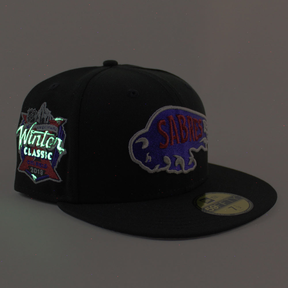 Buffalo Sabres Winter Patch New Era 59Fifty Fitted Hat in Black and Gray Under brim.