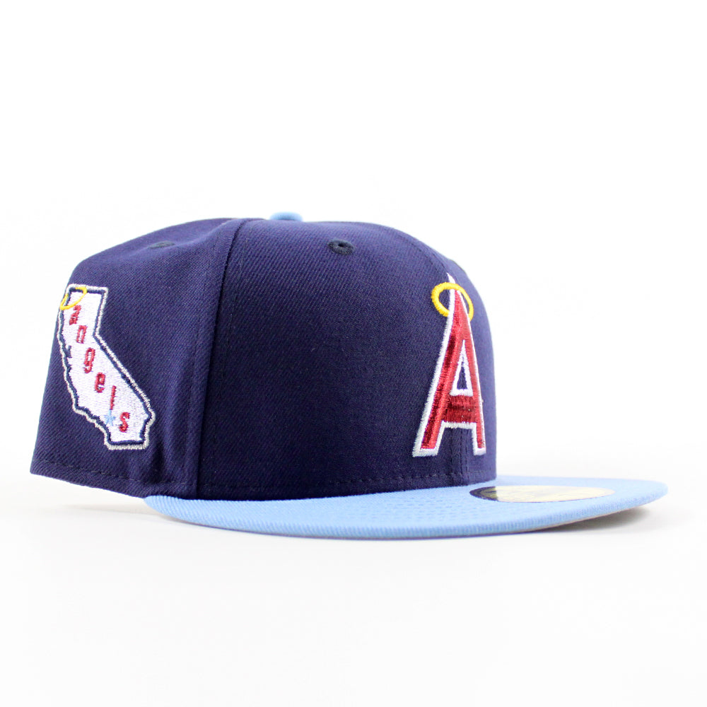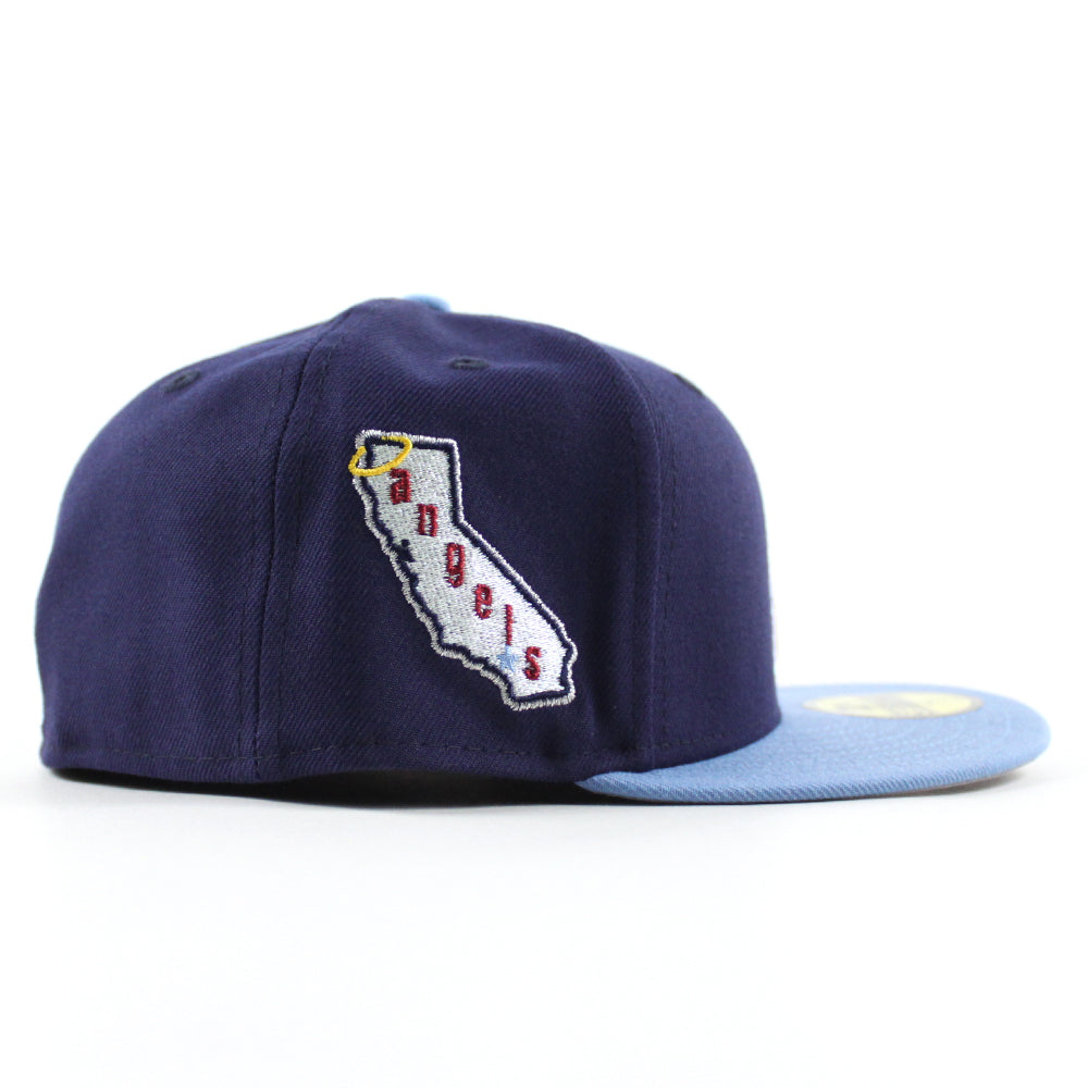 California Angels Angels Patch New Era 59Fifty Fitted Hat in Navy Blue, Sky Blue and Gray Under Brim