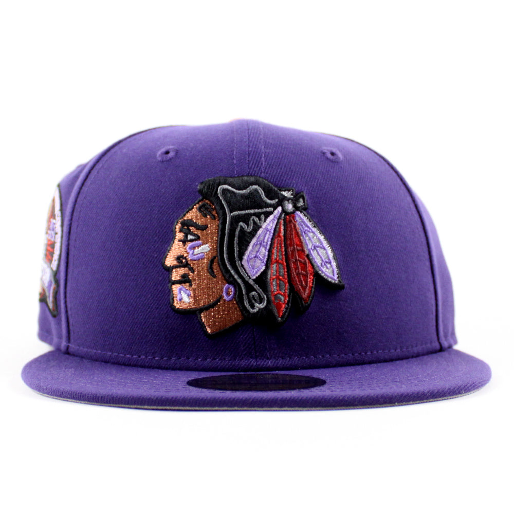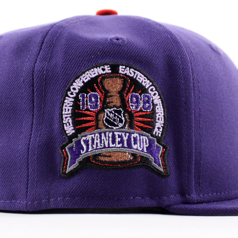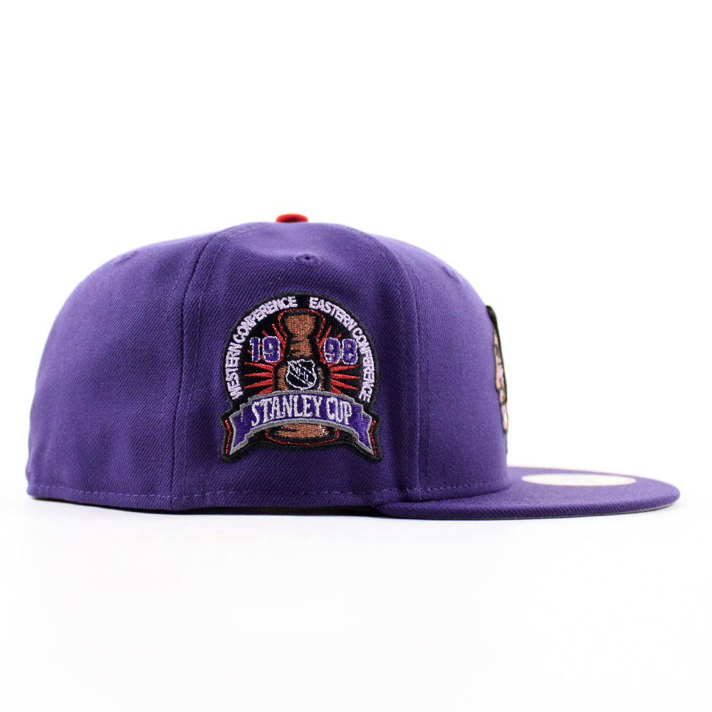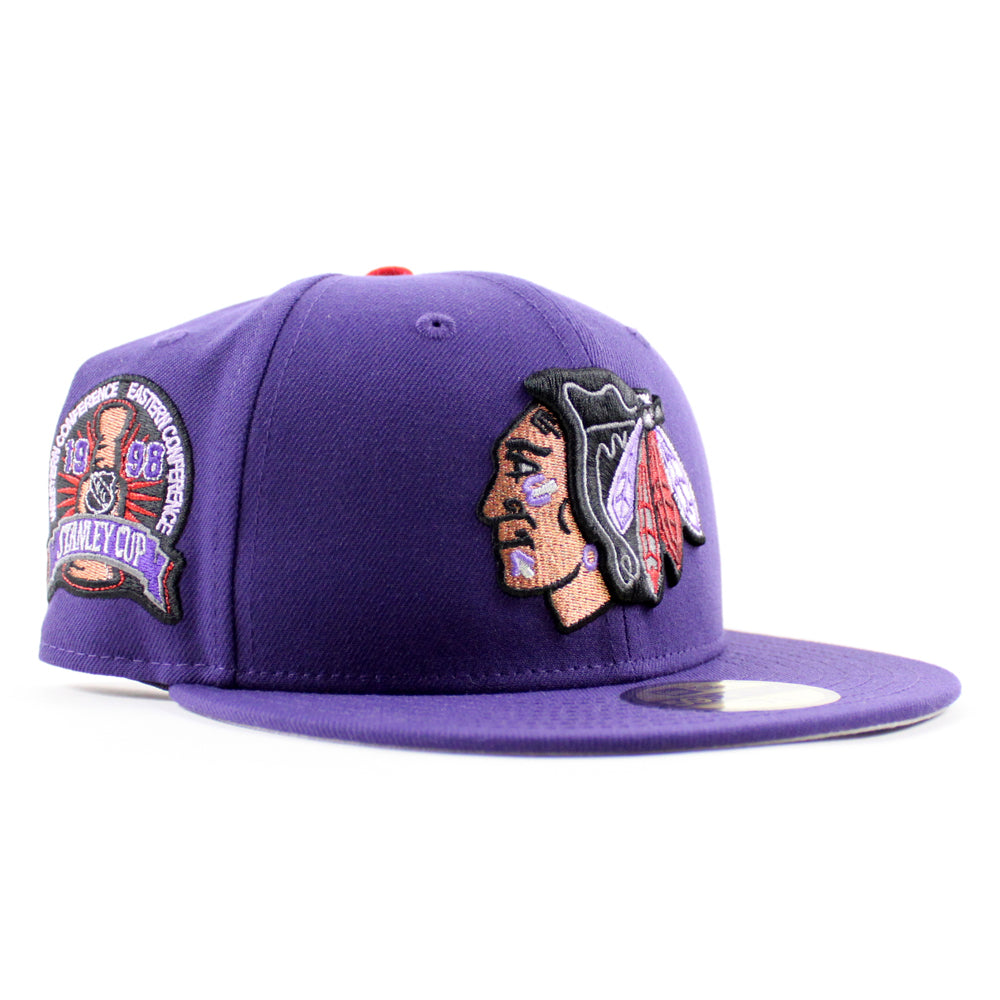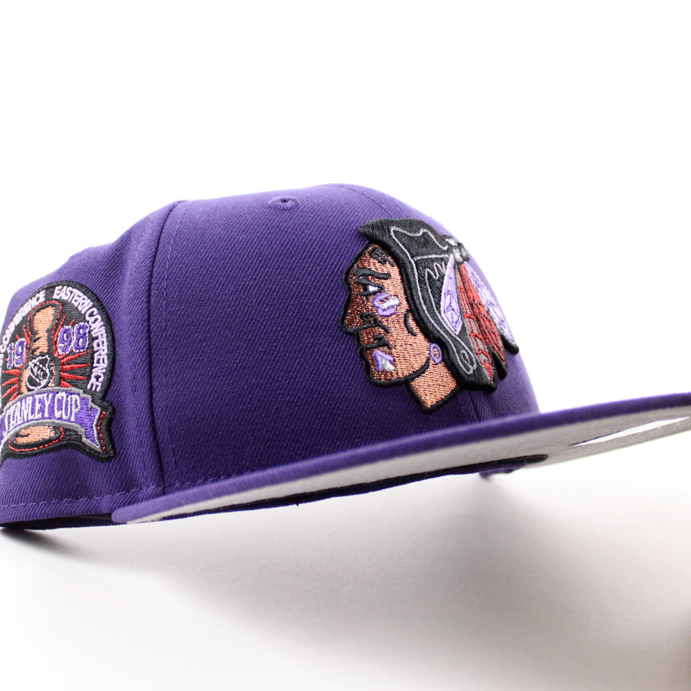 Chicago Blackhawks 1998 Stanley Cup New Era 59Fifty Fitted Hat in Purple and Gray Under brim.