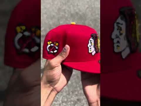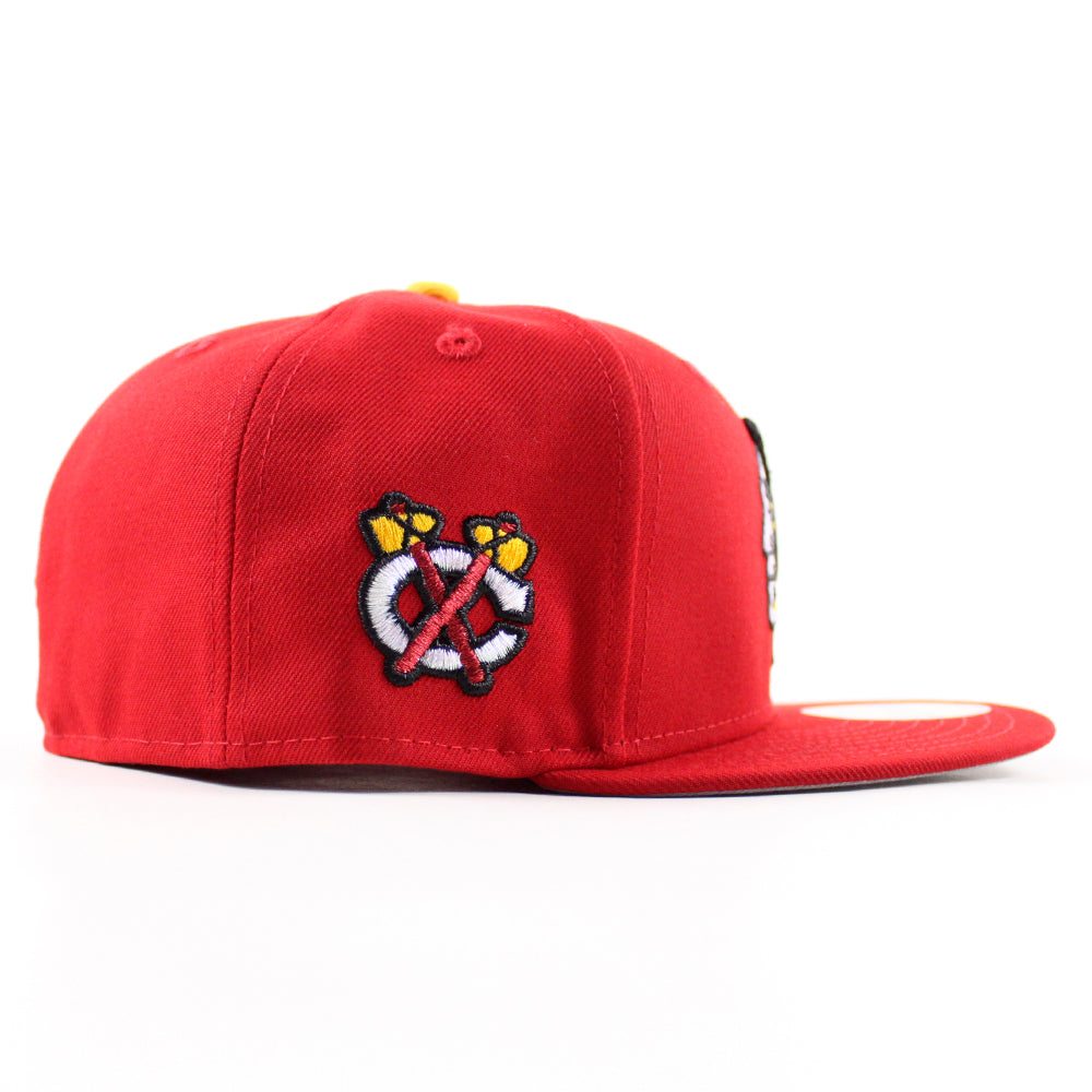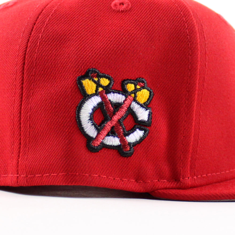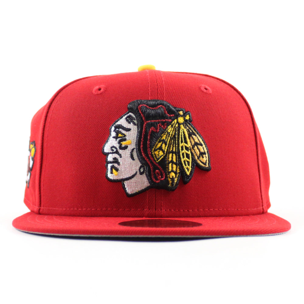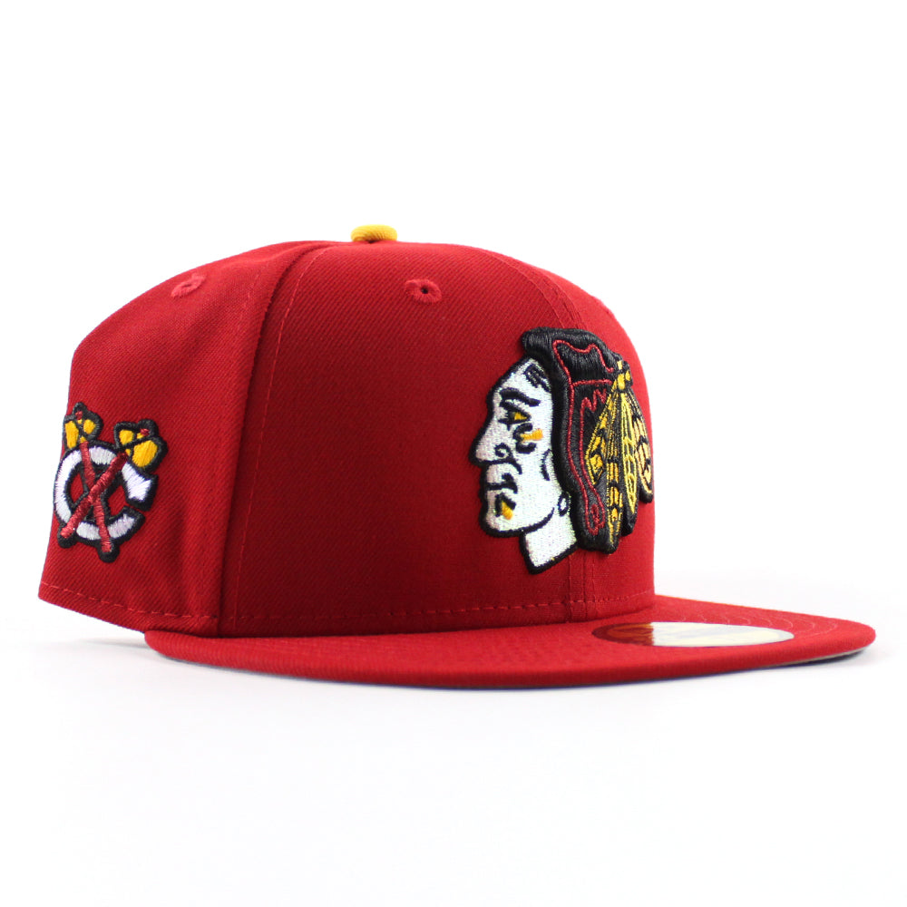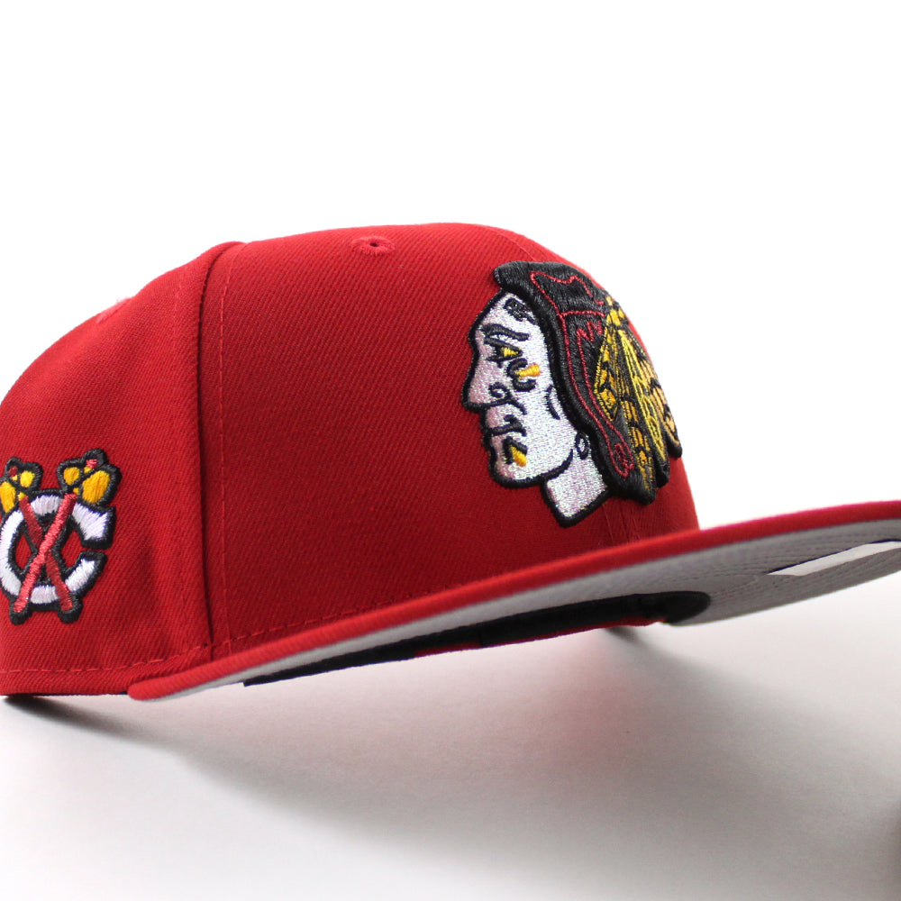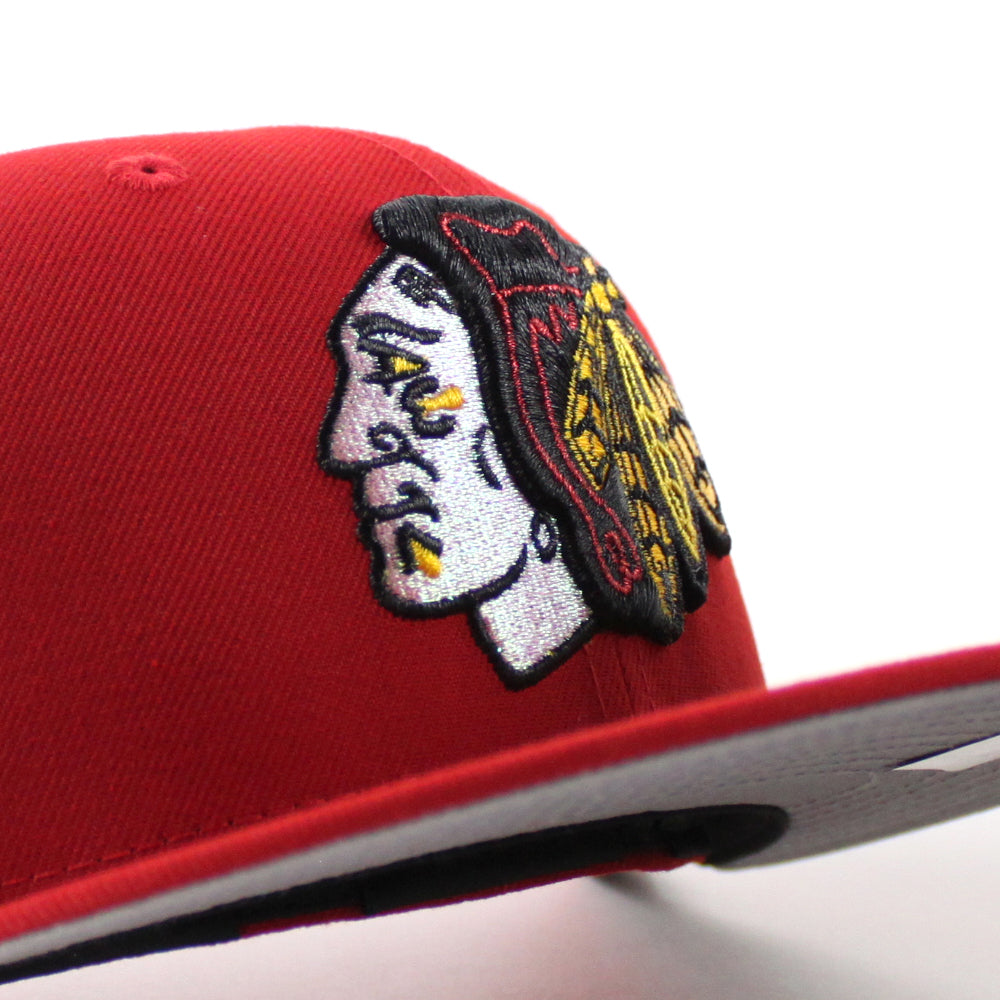 Chicago Blackhawks Black Hawks Logo New Era 59Fifty Fitted Hat in Scarlet and Black Under brim.