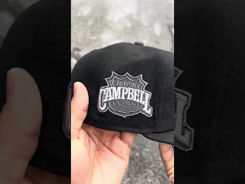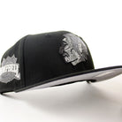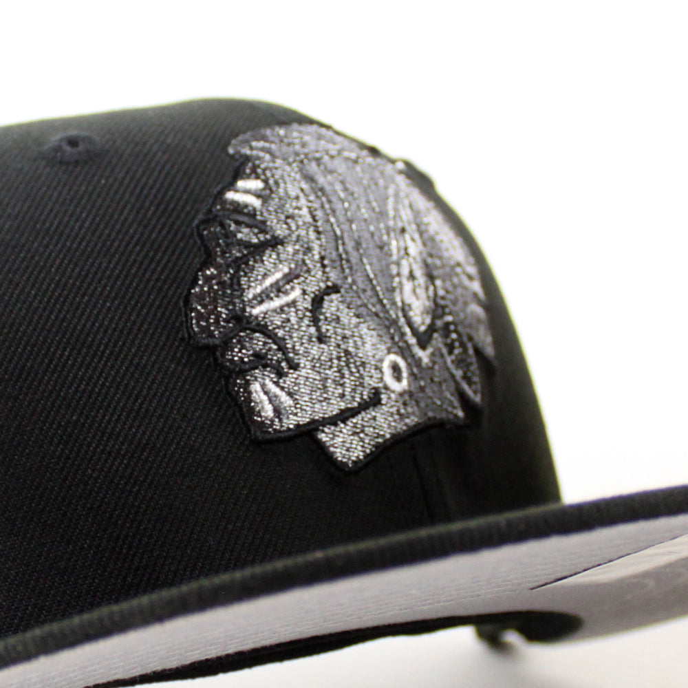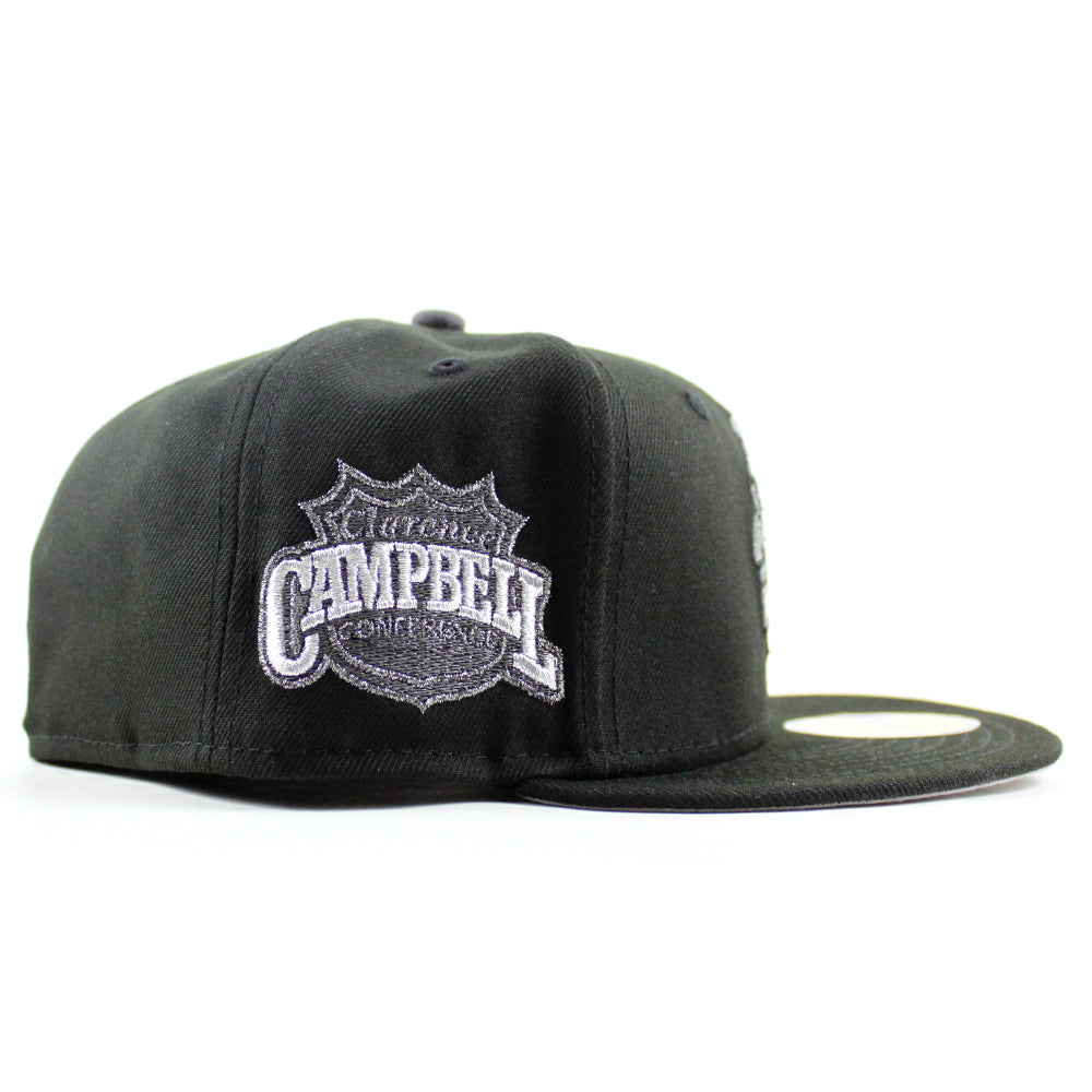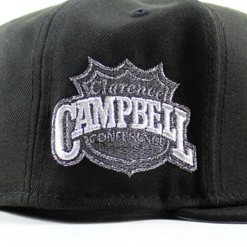Retro Chicago Blackhawks Campbell Conference New Era 59Fifty Fitted Hat in Black and Gray Under brim.