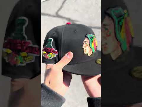 Chicago Blackhawks Stanley Cup Champions New Era 59Fifty Fitted Hat in Black and Gray Under brim.