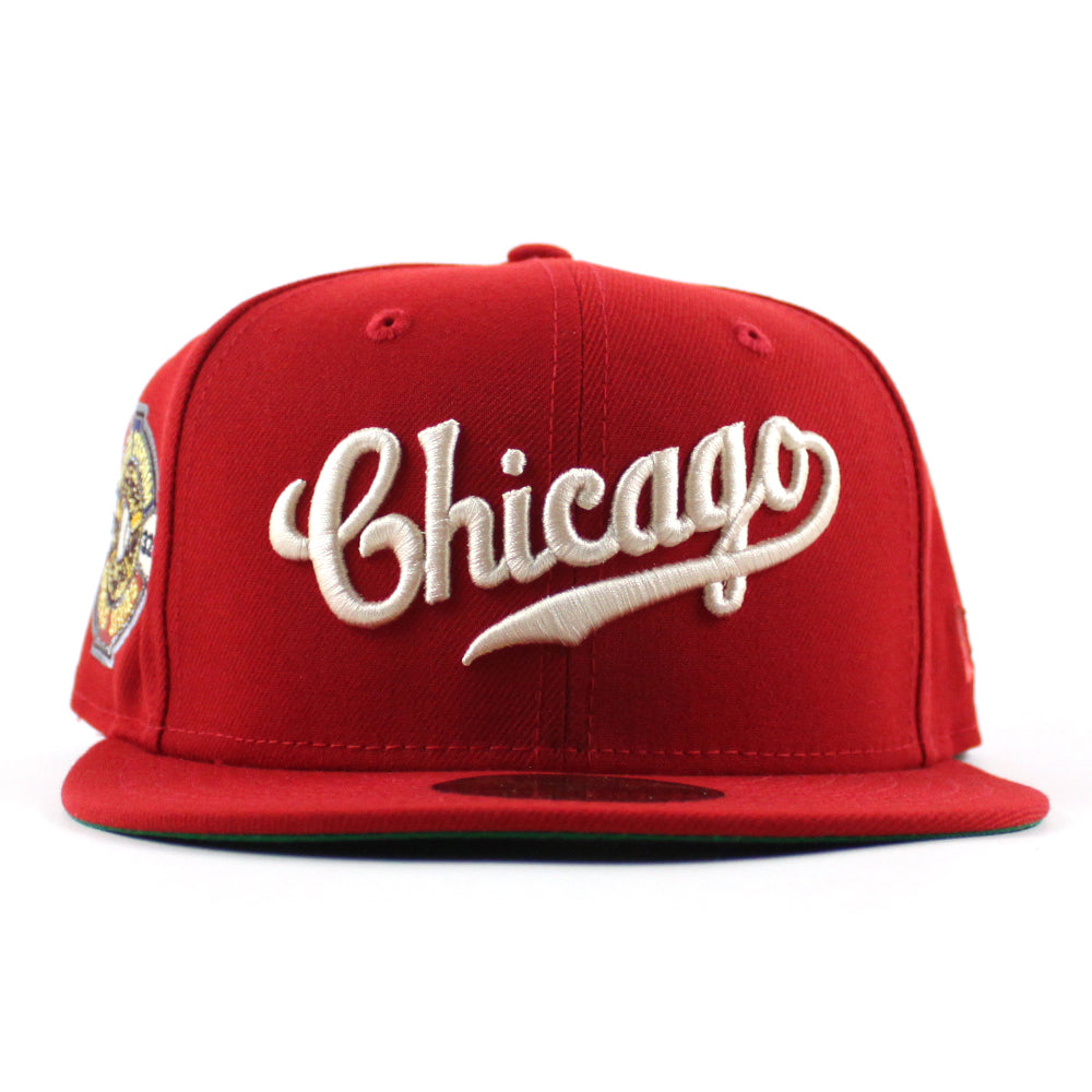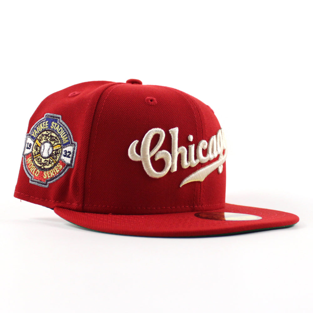 Chicago Cubs 1932 World Series 59Fifty New Era Fitted Hat in Scarlet Red and Green Under Brim.