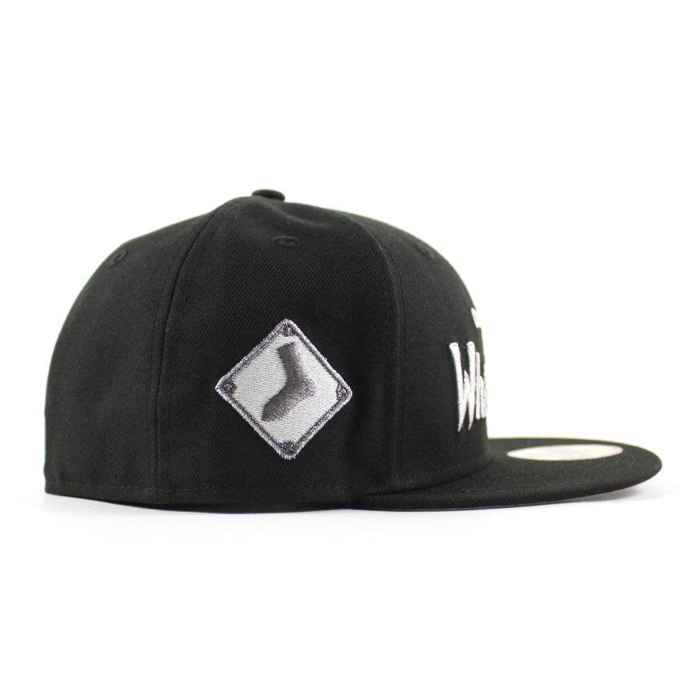Chicago White Sox Socks Patch New Era Fitted 59Fifty Cap in Black and Gray Under Brim.
