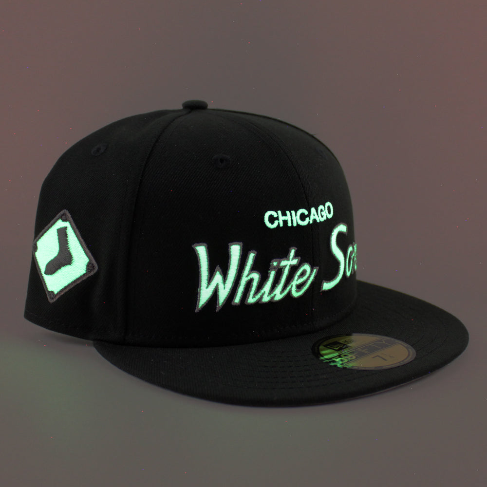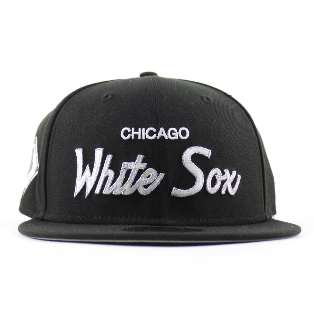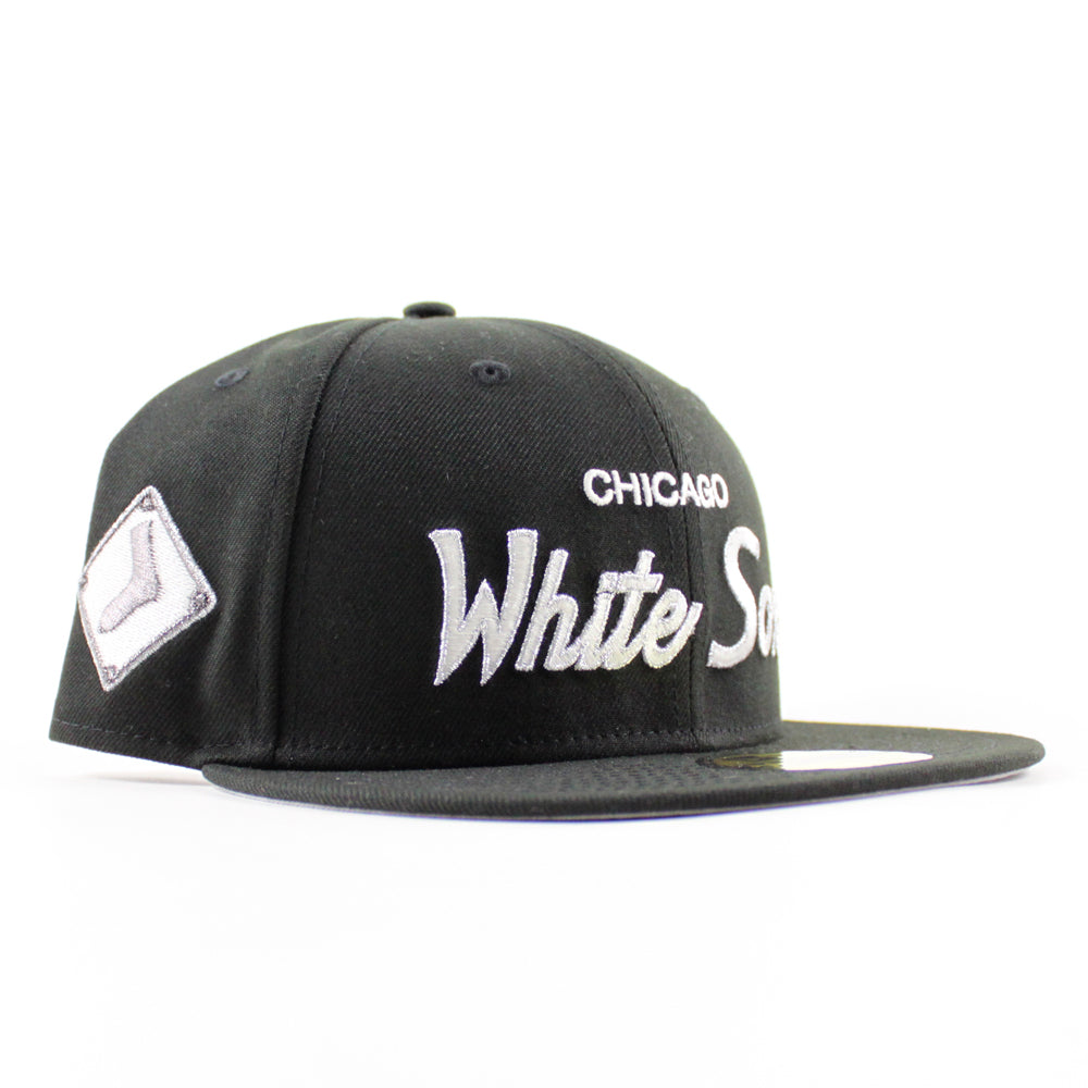 Chicago White Sox Socks Patch New Era Fitted 59Fifty Hat (Black Gray Under Brim)