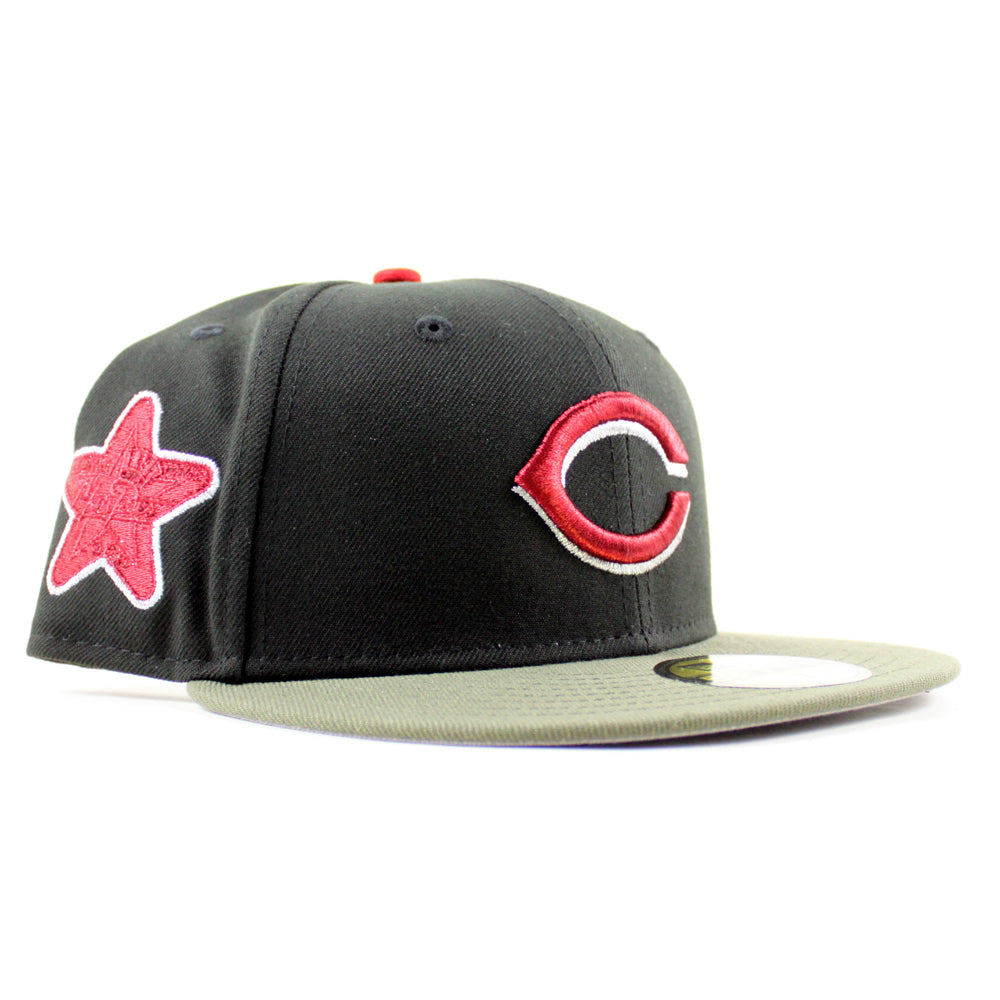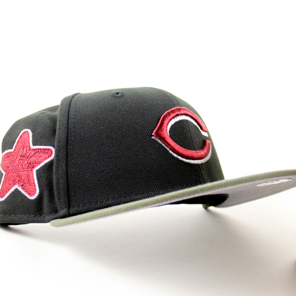 Cincinnati Reds 1960 All Star Game New Era 59Fifty Fitted Cap in Black, Olive Green and Gray Under Brim.
