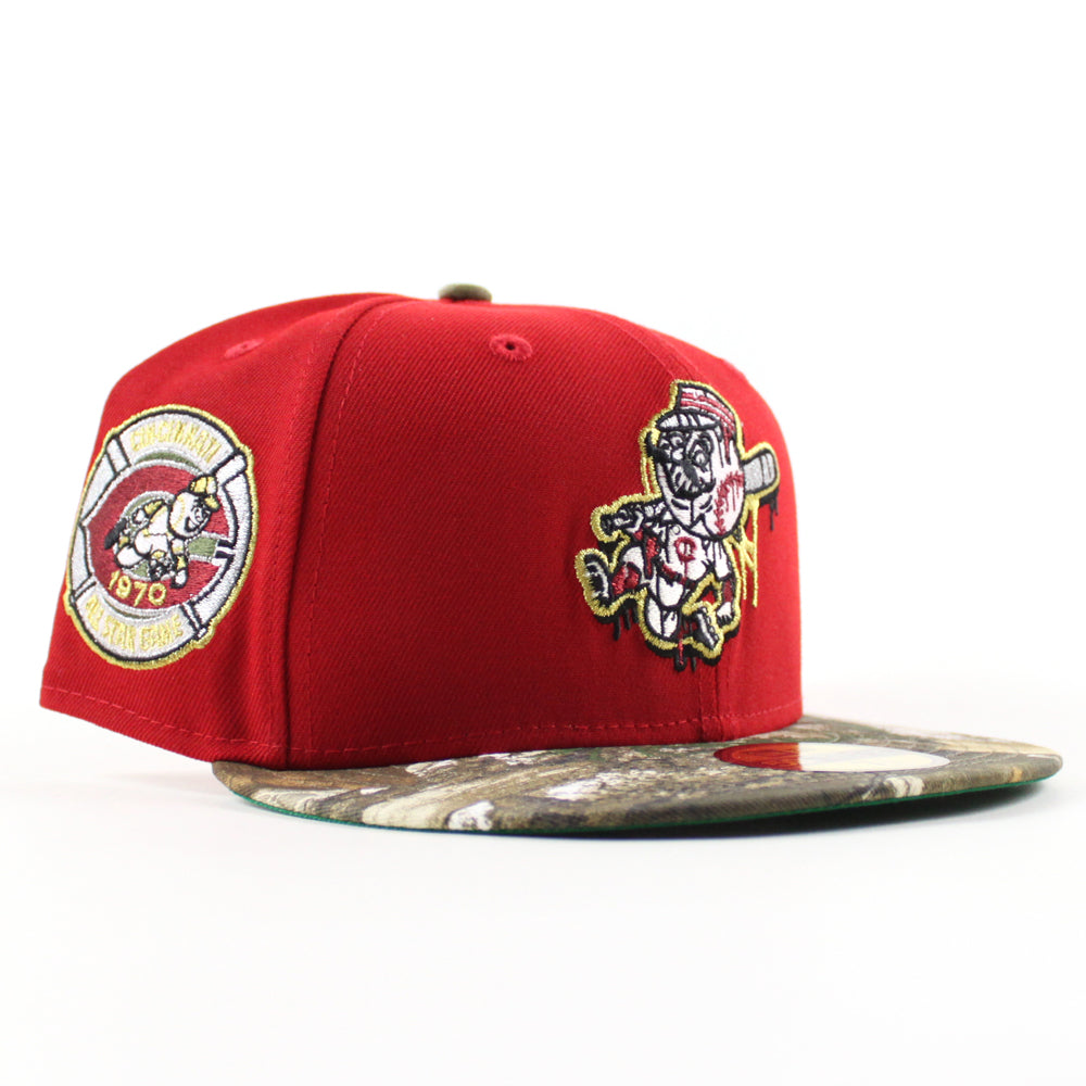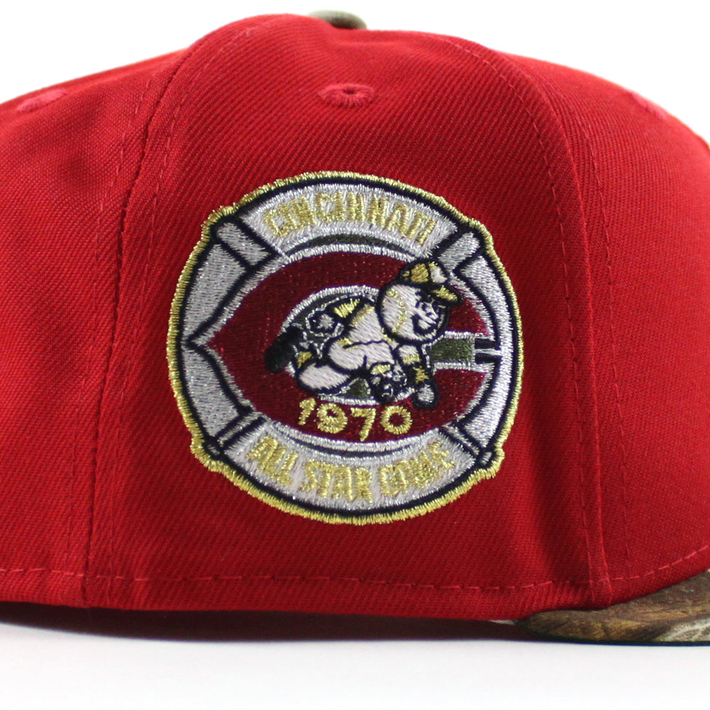 Cincinnati Reds 1970 All Star Game New Era 59Fifty Fitted Hat in Scarlet Red, RealTree Camo & Green Under Brim.