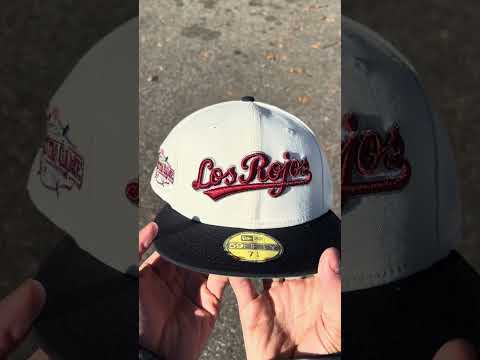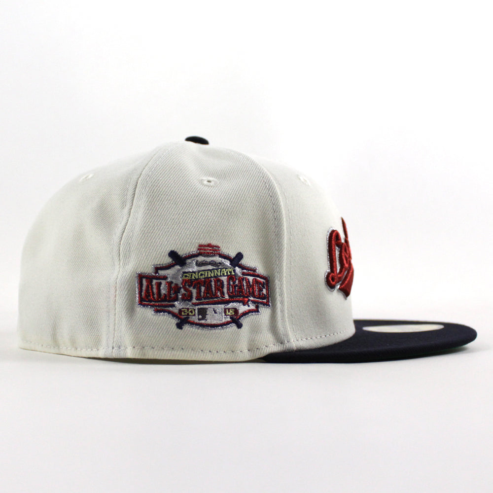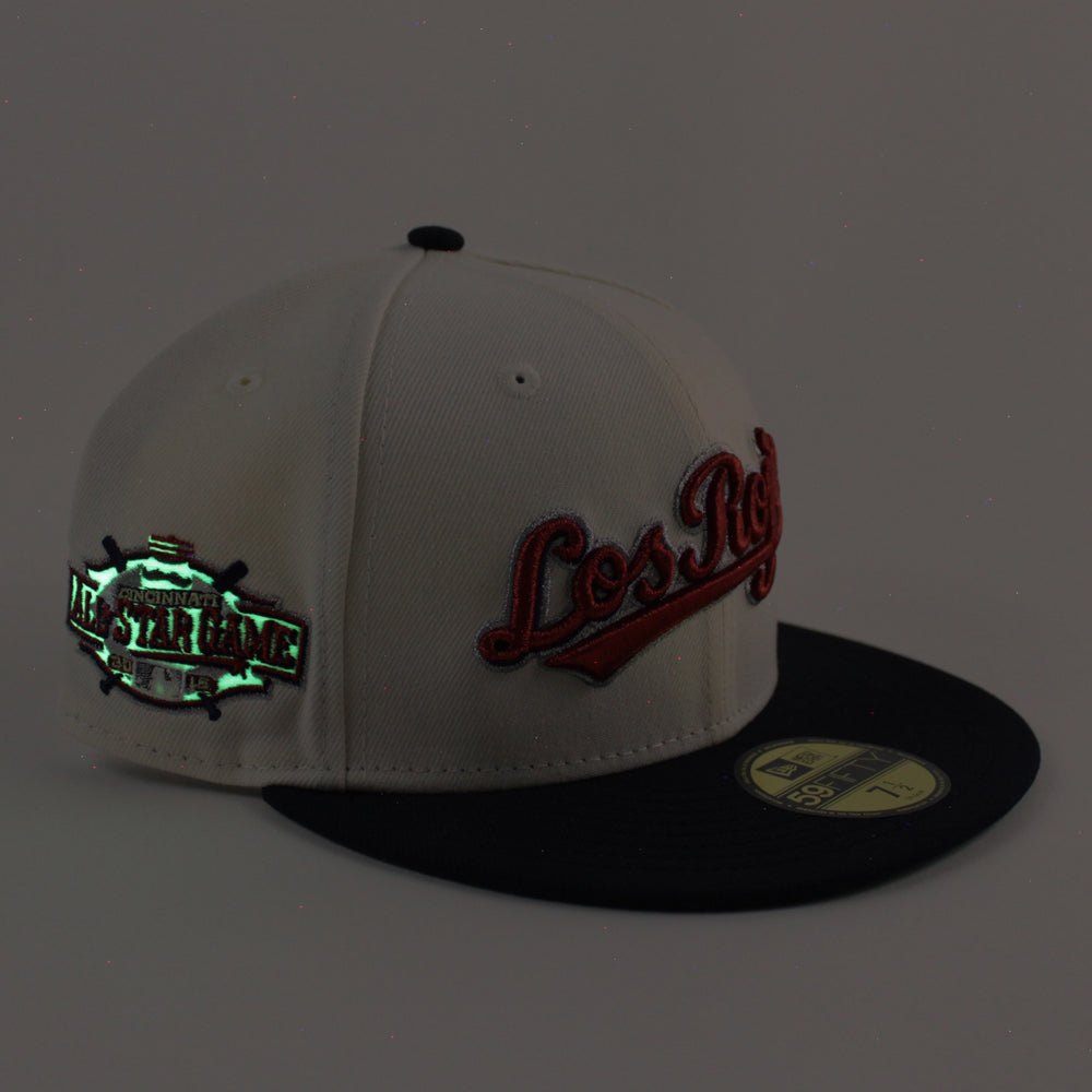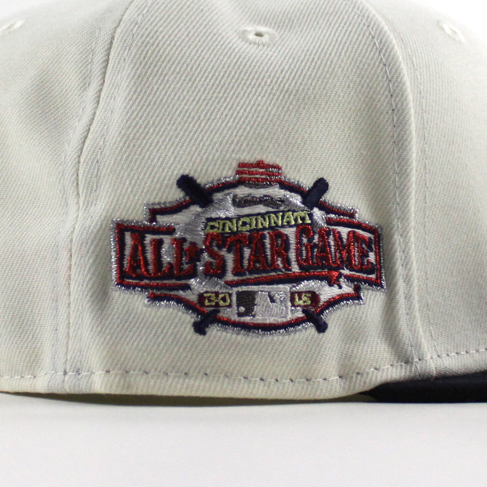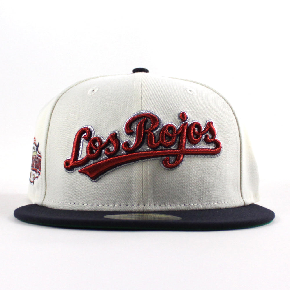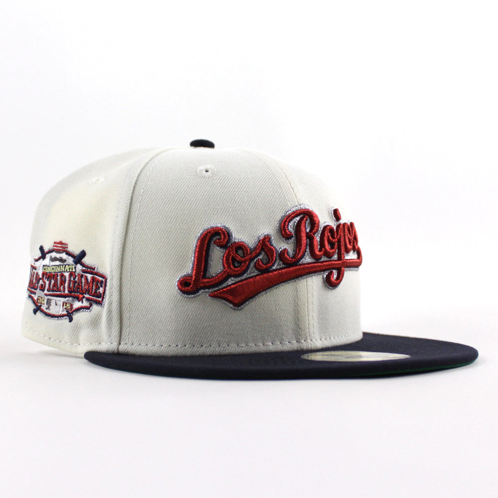 Los RoJos Cincinnati Reds 2015 All Star Game New Era 59Fifty Fitted Cap in Chrome White, Navy and Green Under Brim.