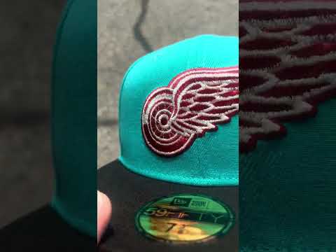 Detroit Red Wings 2008 Stanley Cup New Era 59Fifty Fitted Hat in Teal Black with Gray Under brim.
