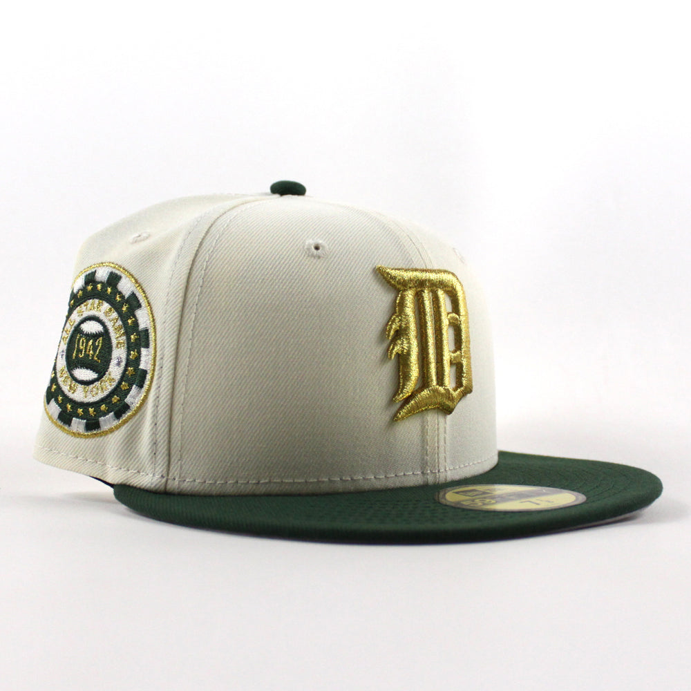 Detroit Tigers 1942 All Star Game Poker Chip Patch New Era 59Fifty Fitted Cap in Chrome White, Mountain Green and Gray Under Brim.