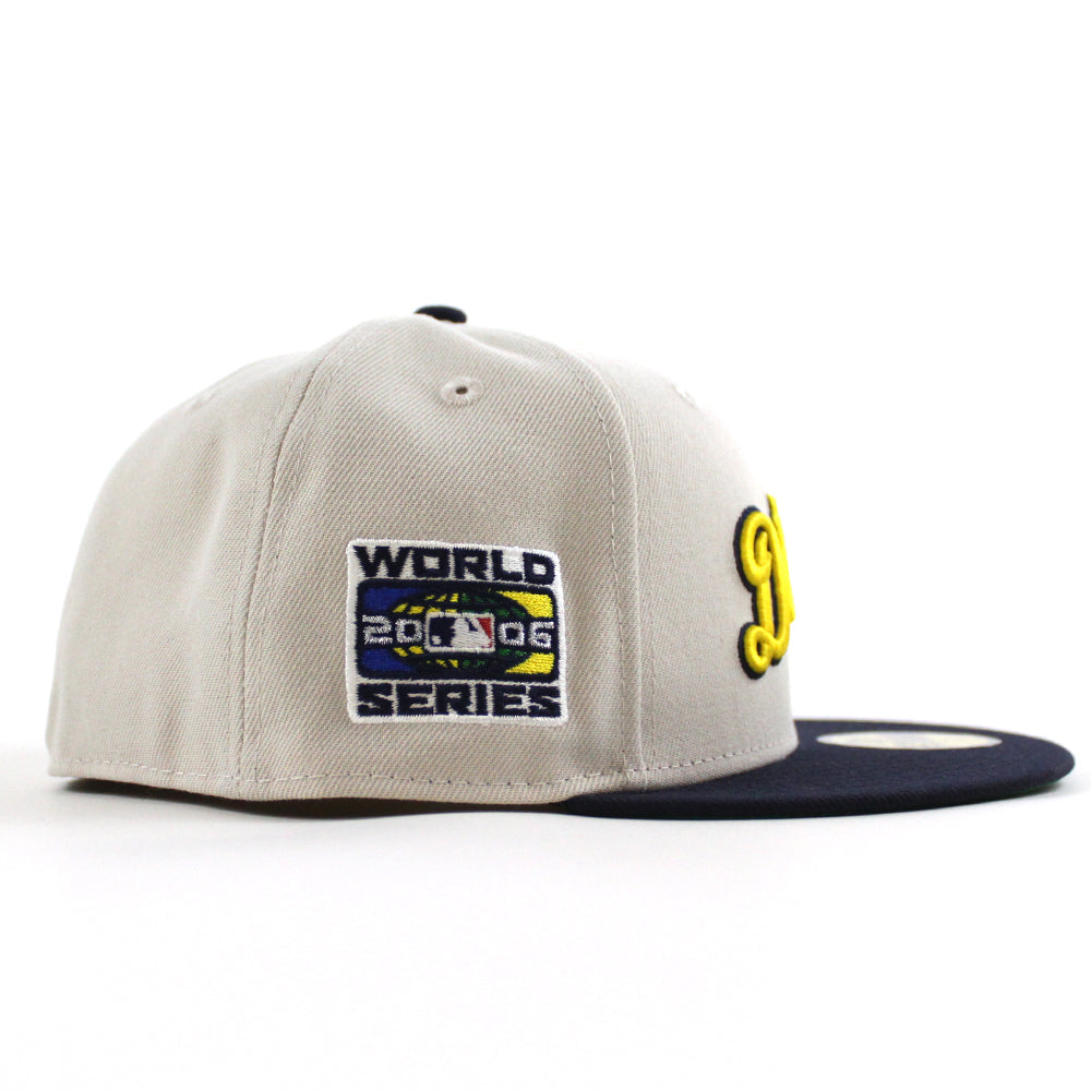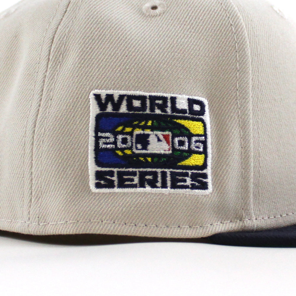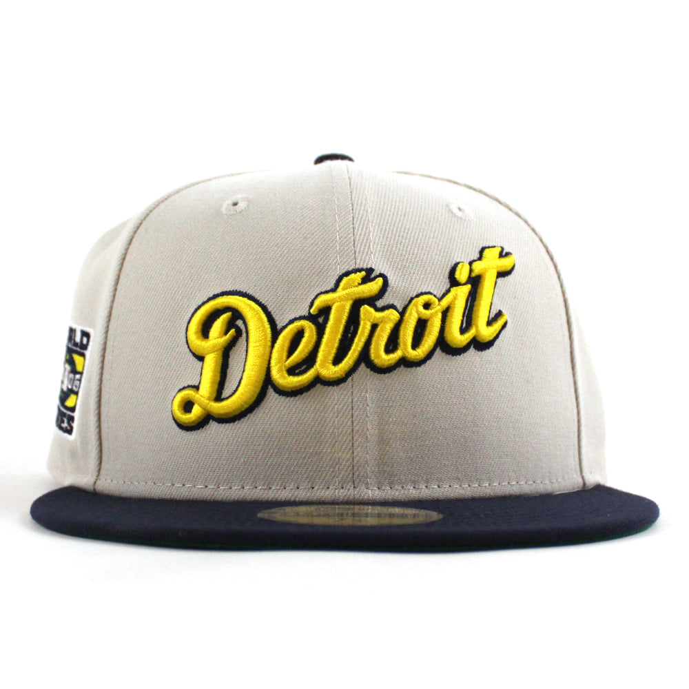 Detroit Tigers 2006 World Series New Era 59Fifty Fitted Cap in Stone, Navy and Green Under Brim.