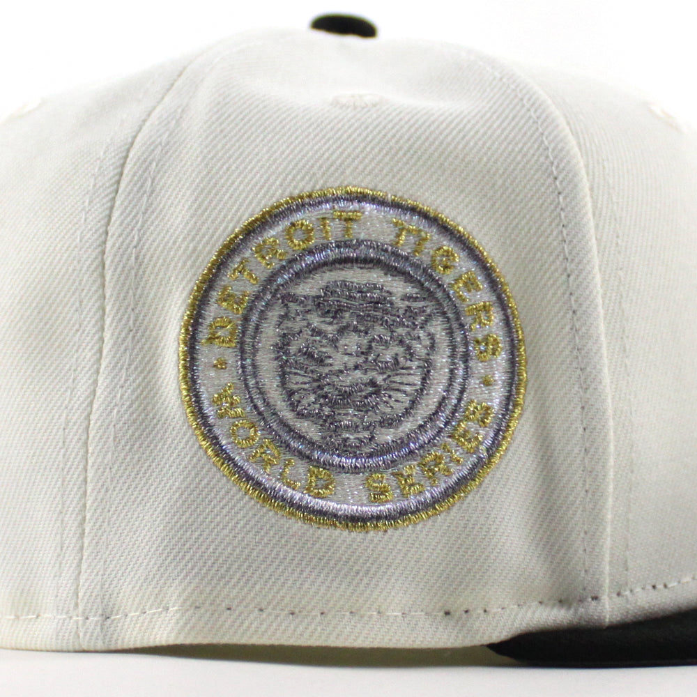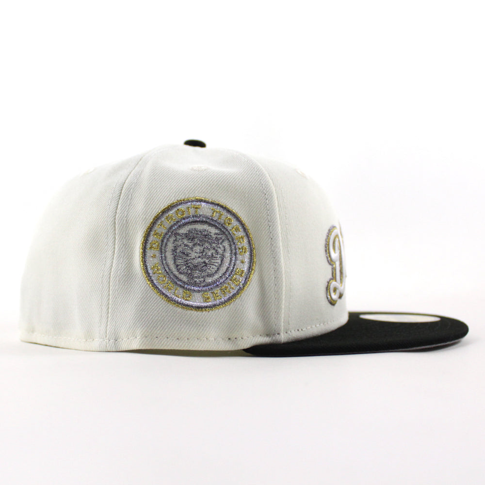 Detroit Tigers World Series New Era 59Fifty Fitted Cap in Chrome White, Black and Gray Under Brim.