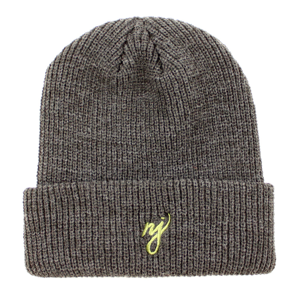 The original NJ script beanie in Dark Gray Olive Green. Stay warm and represent your state at the same time!