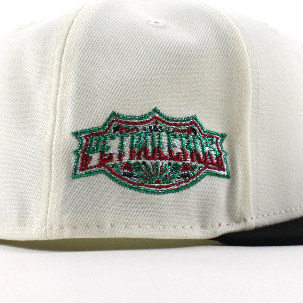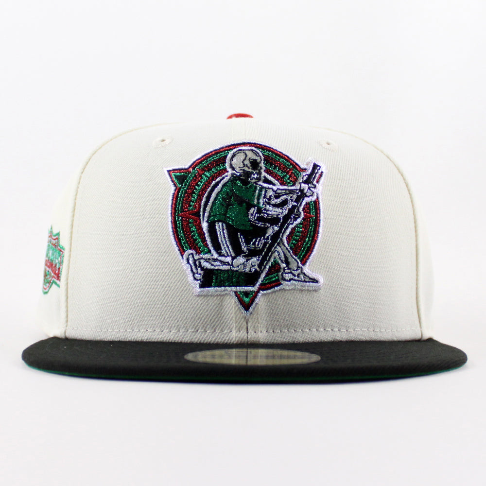 Edmonton Oilers EDMOIL DIA DE LOS MUERTOS PETROLERO MEXICAN HERITAGE New Era 59Fifty Fitted Hat in Chrome White, Black and Green Under brim.