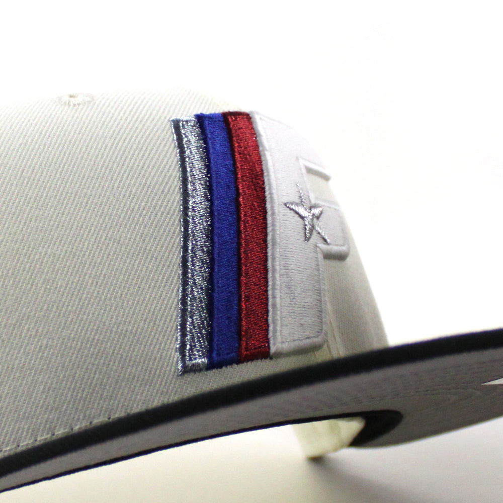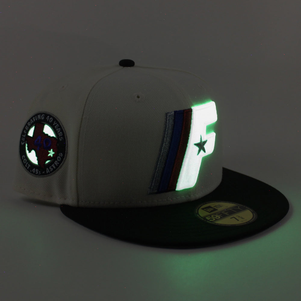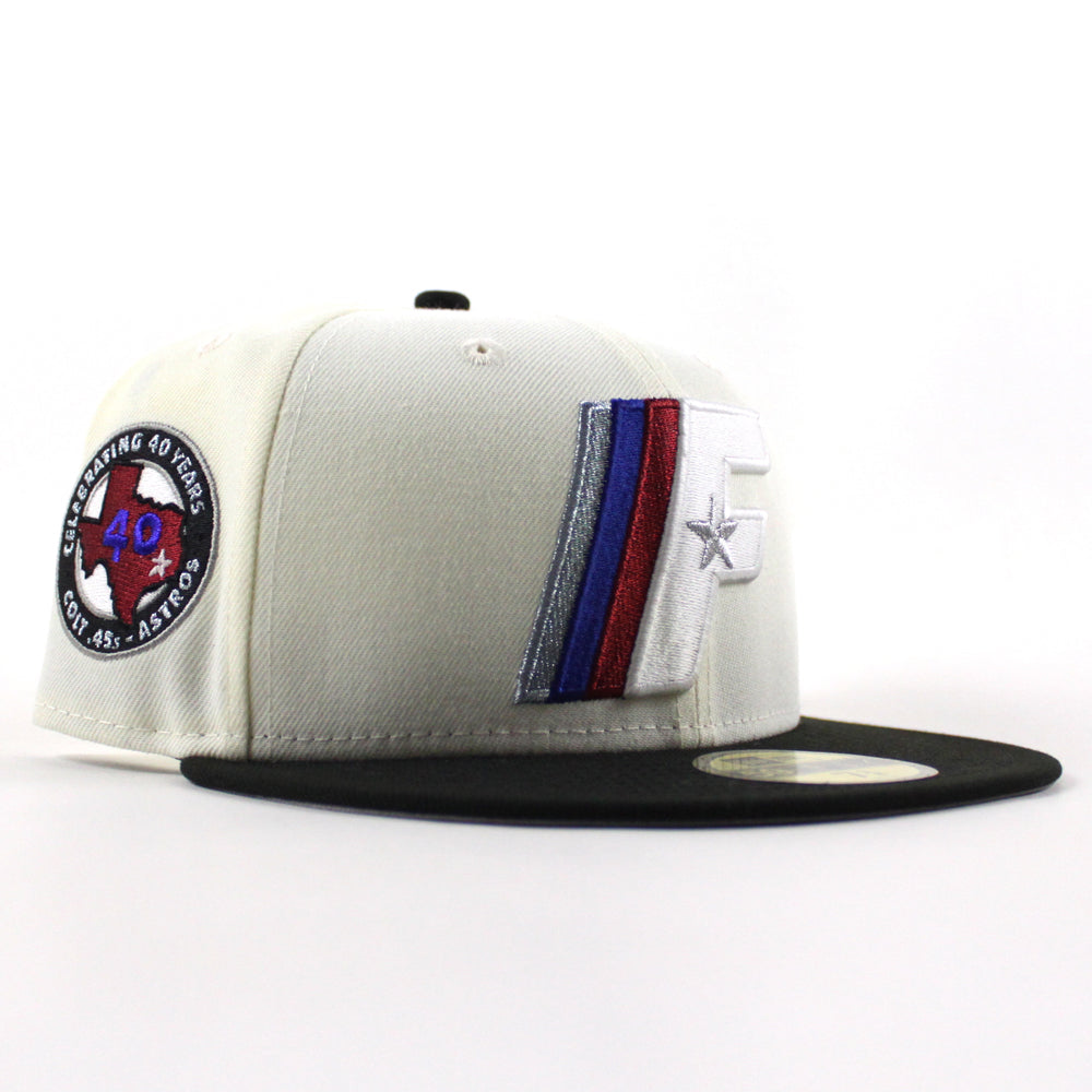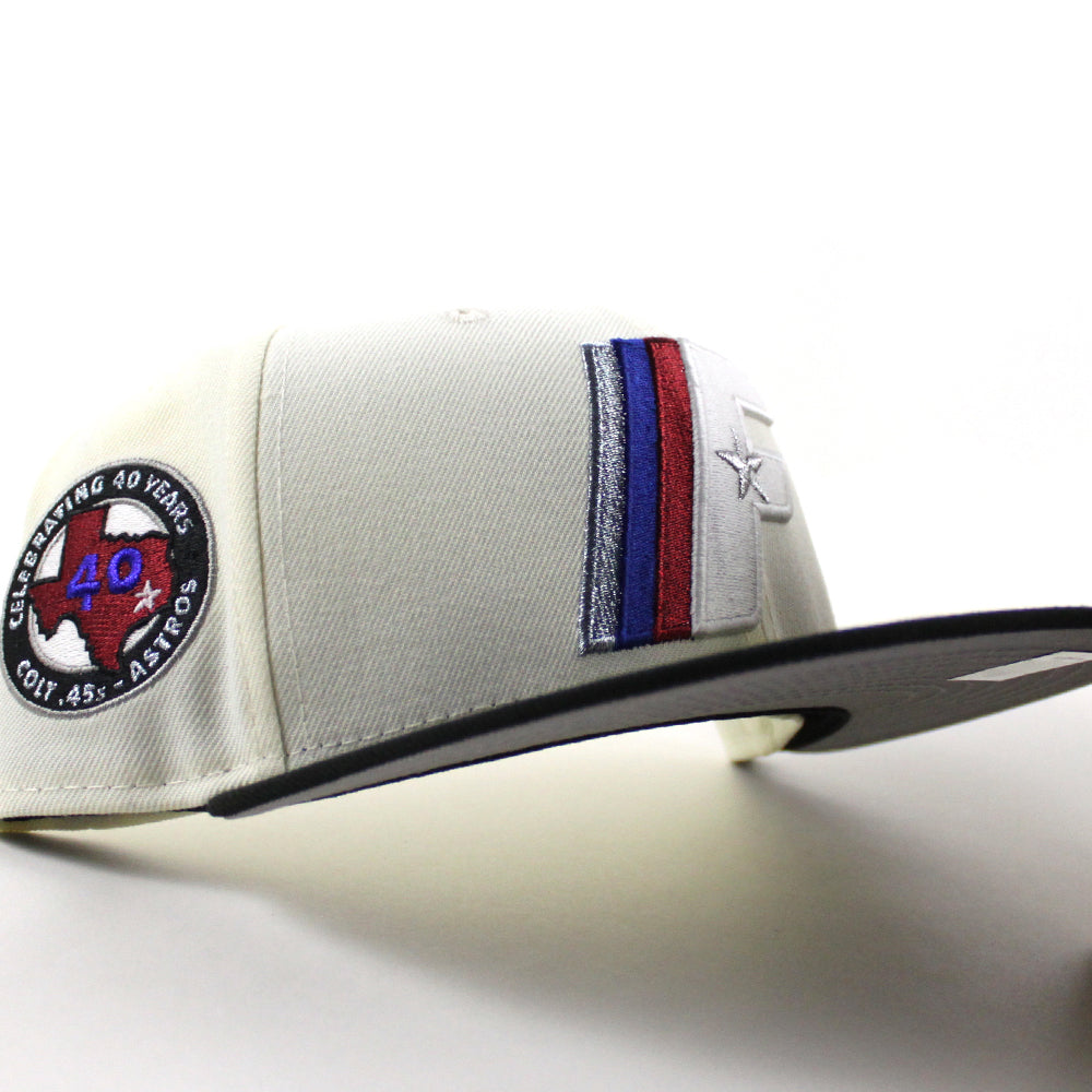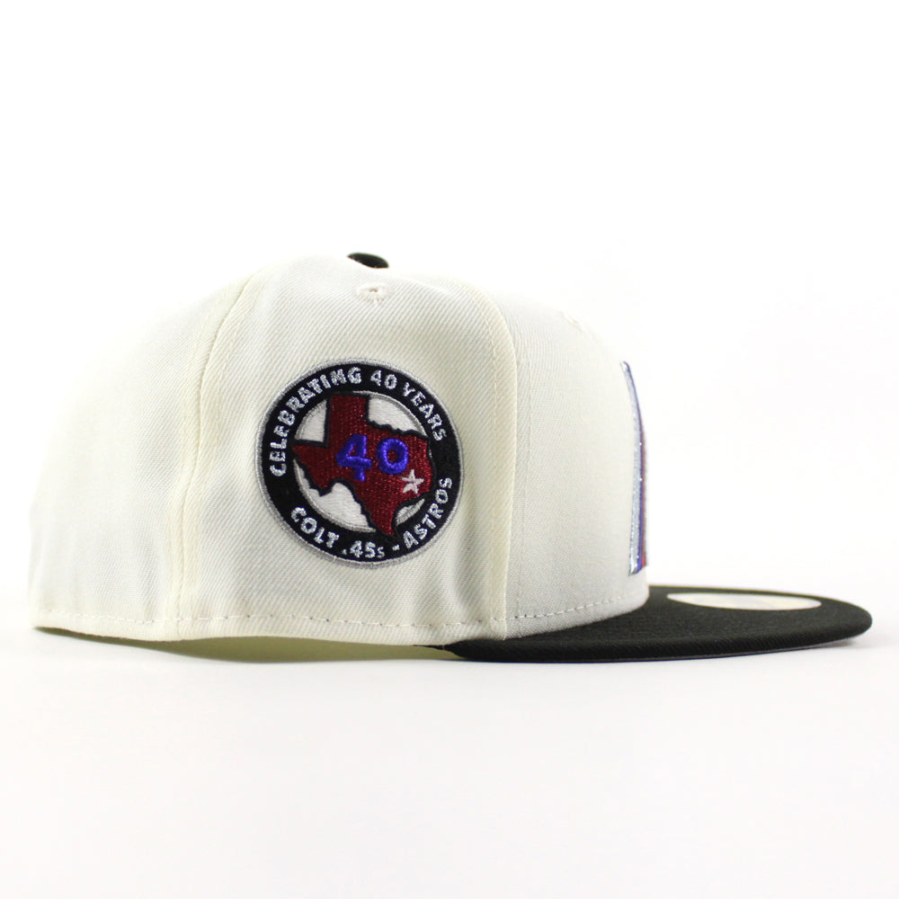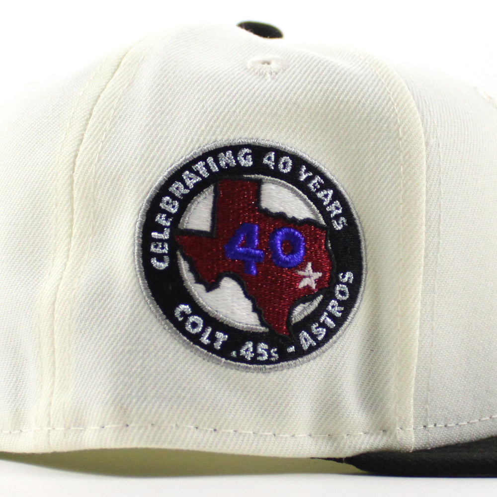 FAYETTEVILLE WOODPECKERS Colt 45s x ASTROS 40 Years Patch New Era 59Fifty Fitted Hat in Chrome White, Black and Gray Under Brim.