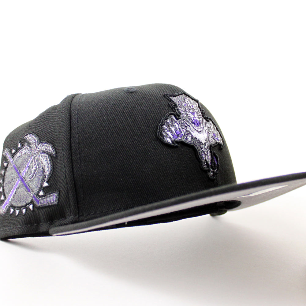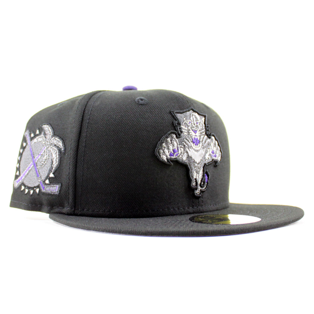 Florida Panthers Palm Tree Patch New Era 59Fifty Fitted Hat in Black and Gray Under brim.