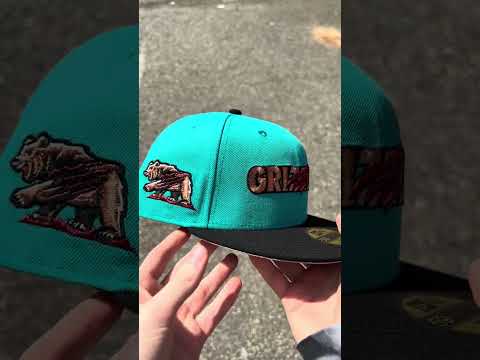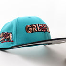Fresno Grizzlies Grizzlies Bear Patch New Era 59Fifty Fitted Cap in Teal Breeze, Black and Gray Under Brim. With Pin.
