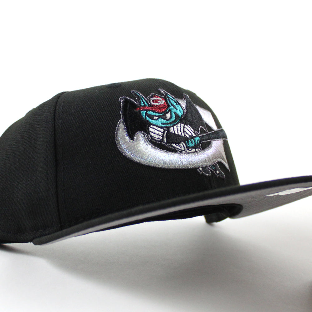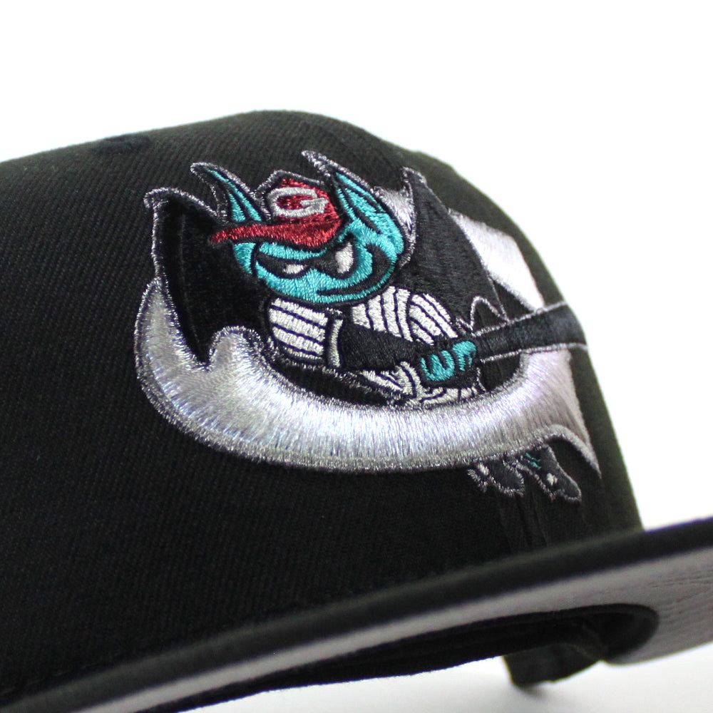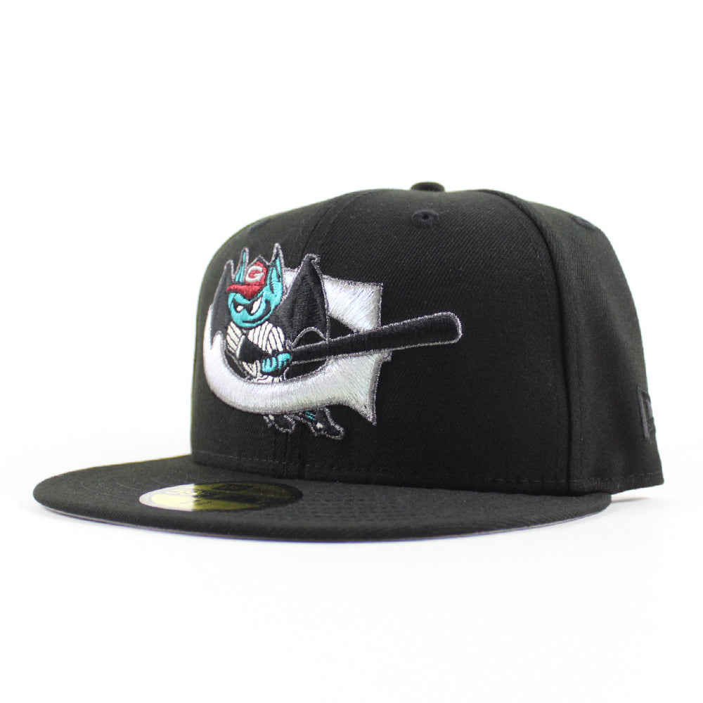 Greensboro Bats New Era 59Fifty Fitted Hat in Black and Gray Under Brim.
