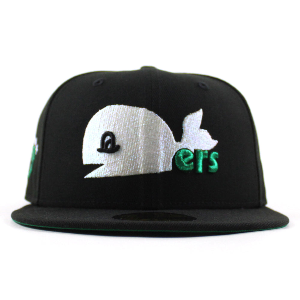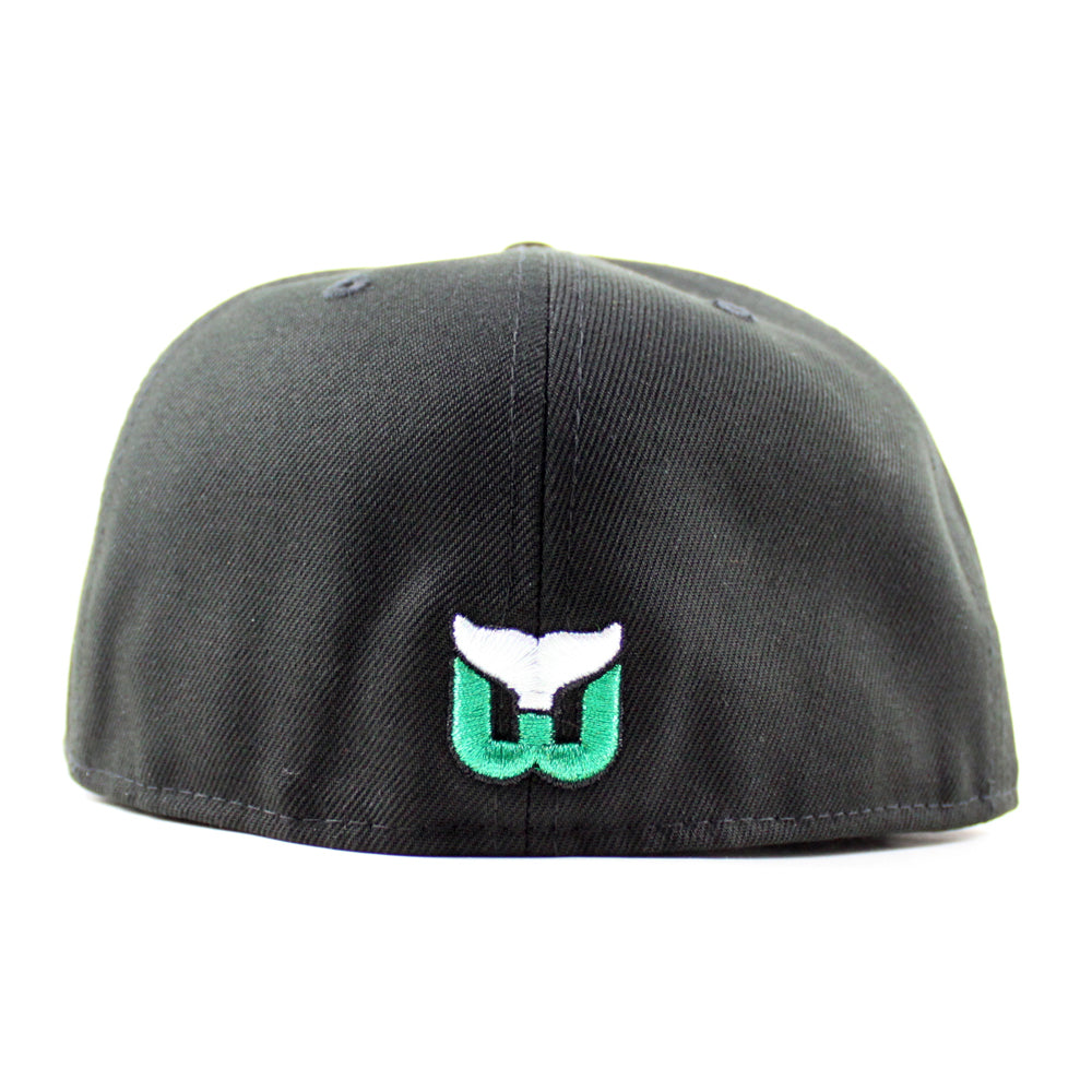 Hartford Whaler Whaler Patch New Era 59Fifty Fitted Hat in Black and Green Under brim.