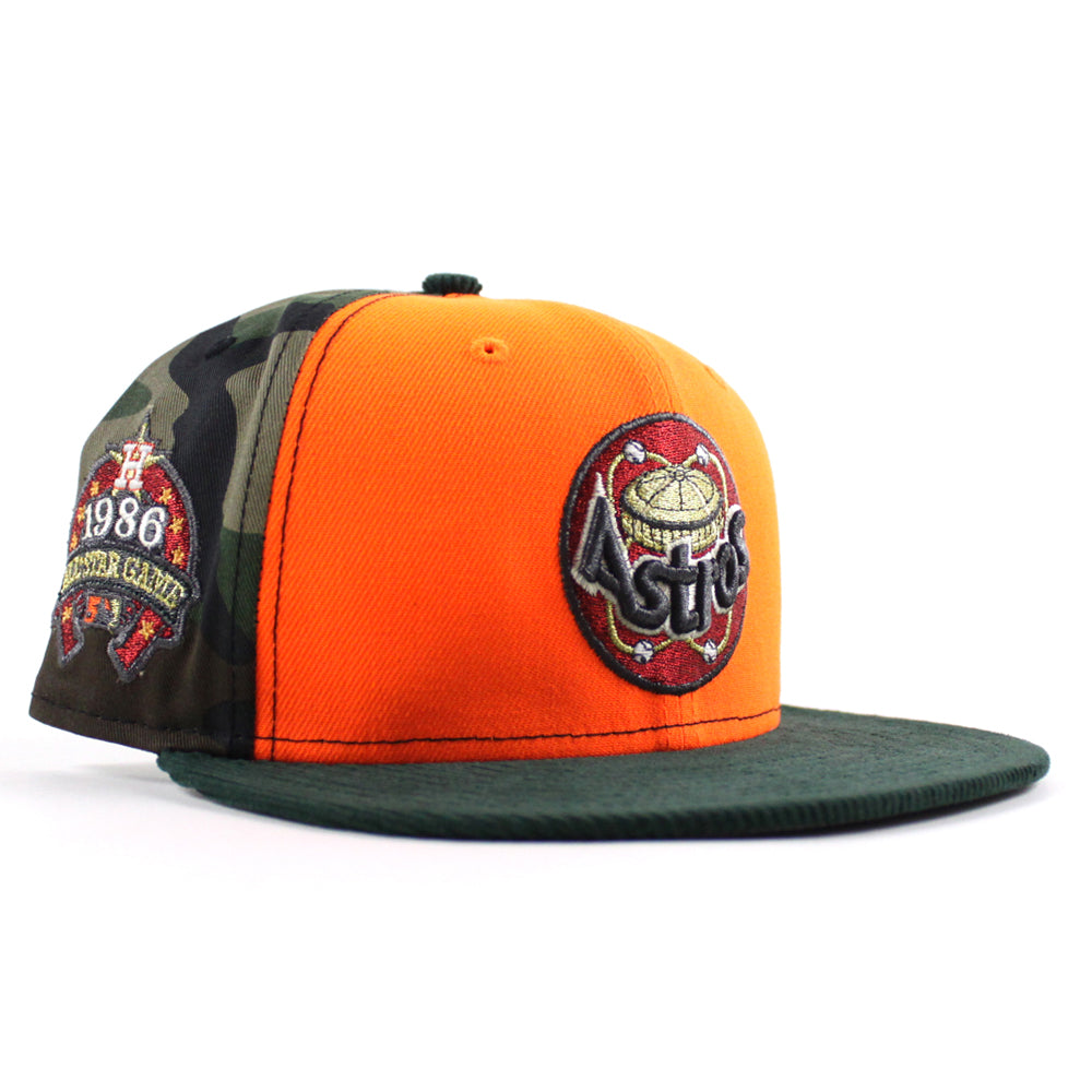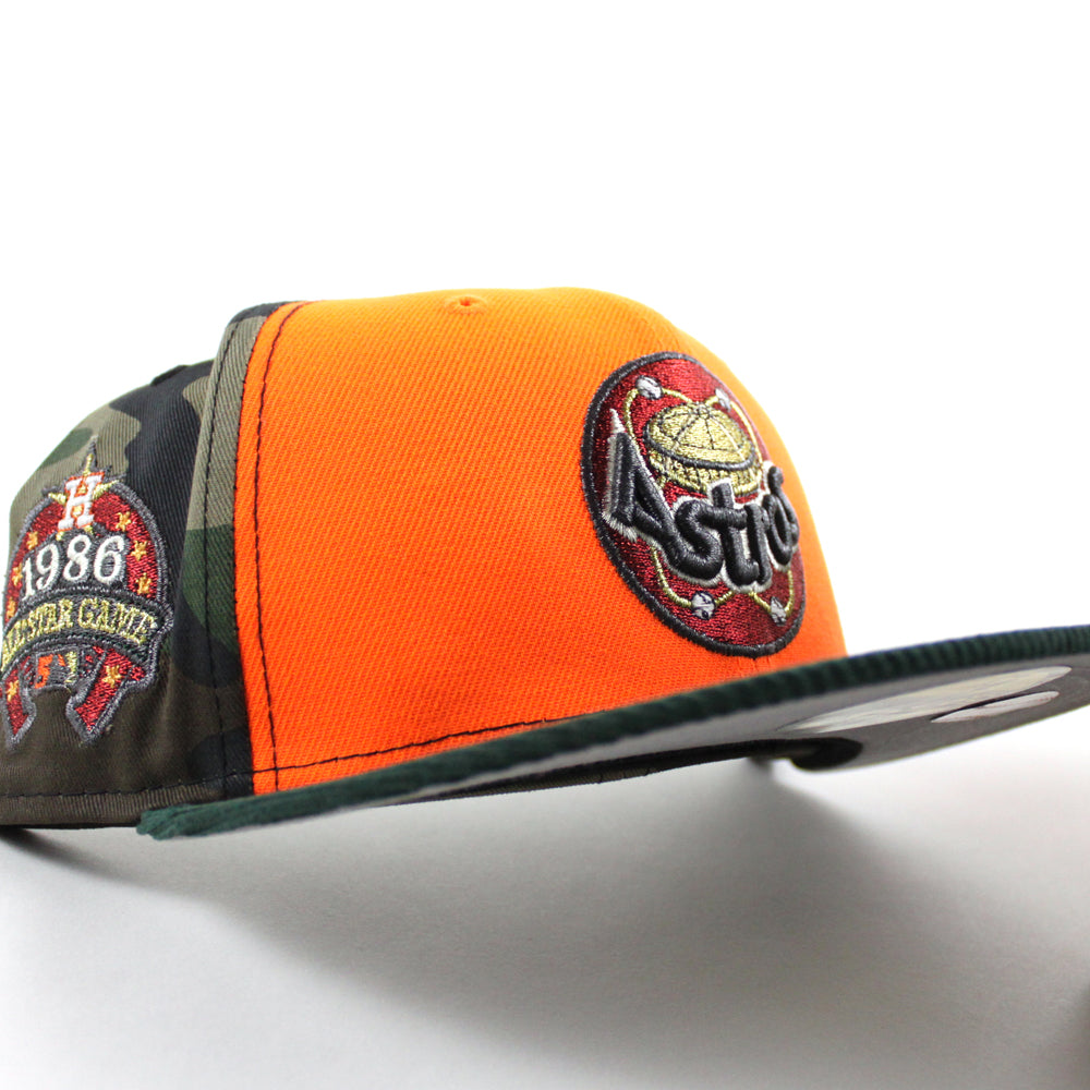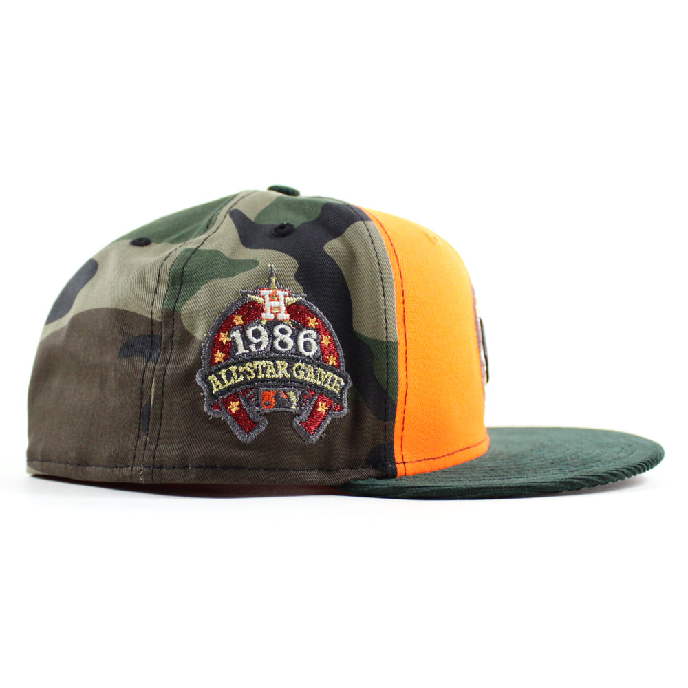 Houston Astros 1986 All Star Game New Era 59Fifty Fitted Cap in Hunter Orange, WoodLand Camo, Green and Gray Under Brim.