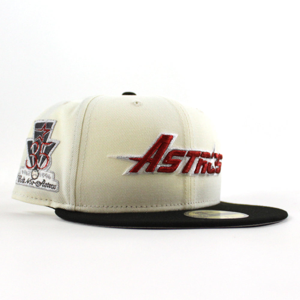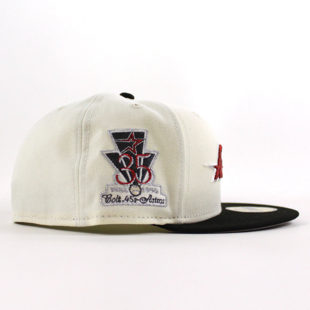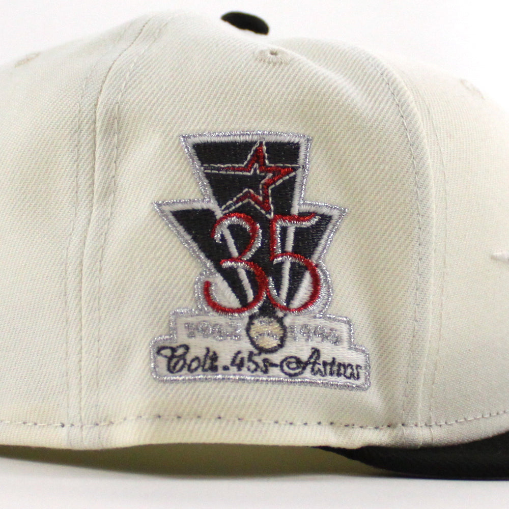 Houston Astros 35 Great Years New Era 59Fifty Fitted Cap in Chrome White, Black and Gray Under Brim.