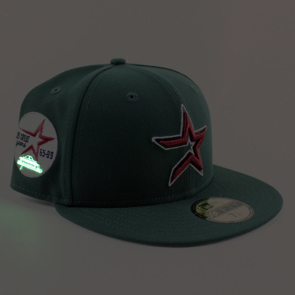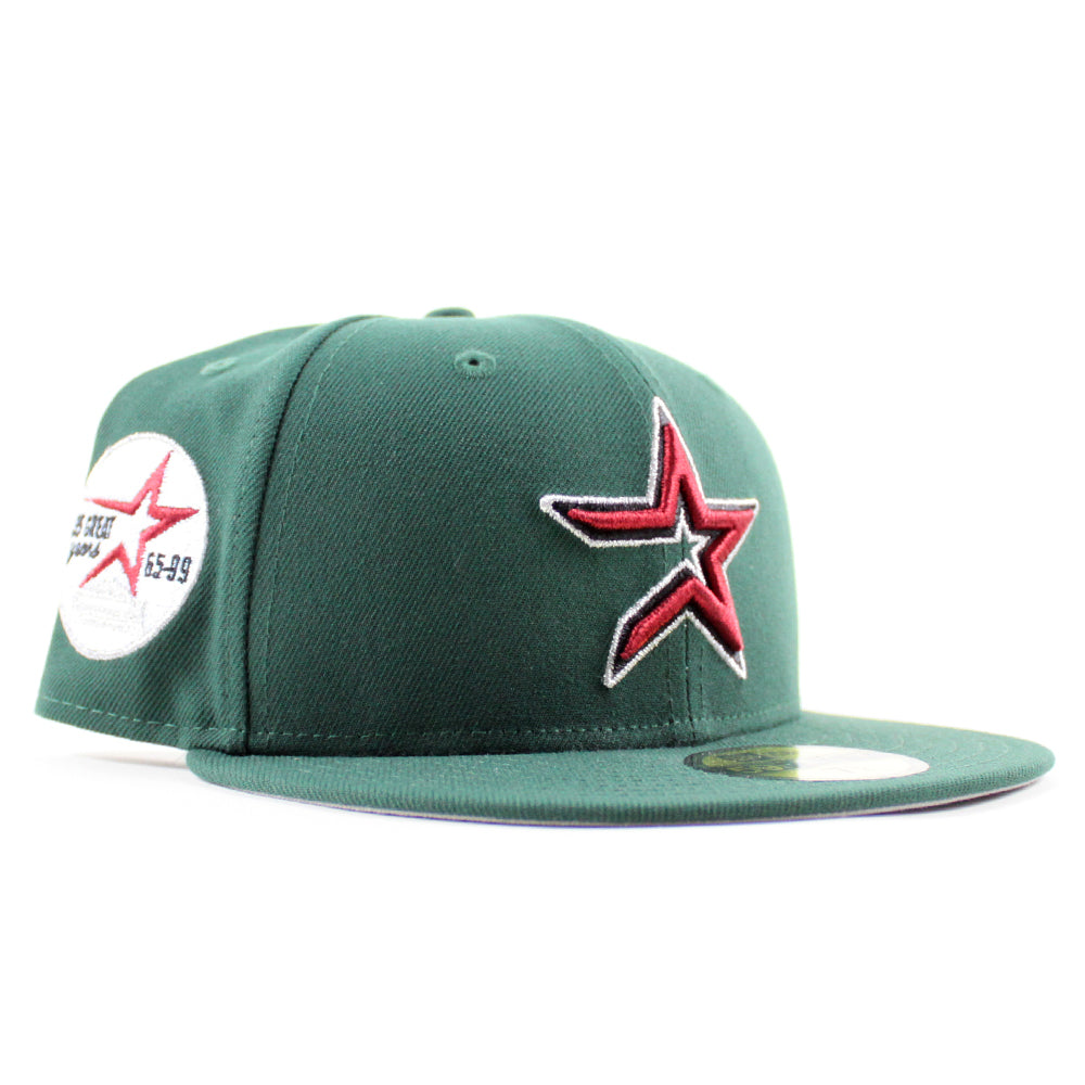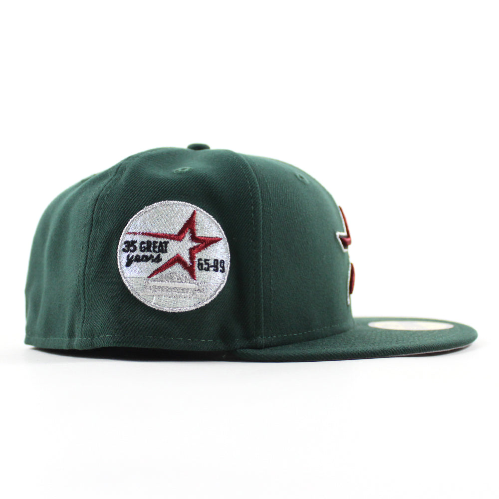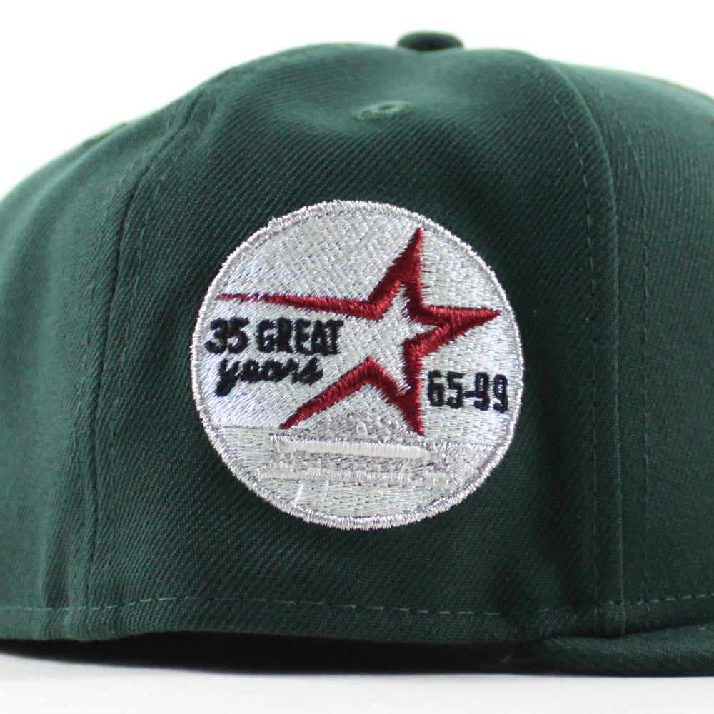 Houston Astros 35 Great Years Patch New Era 59Fifty Fitted Hat in Dark Green Gray Under Brim.
