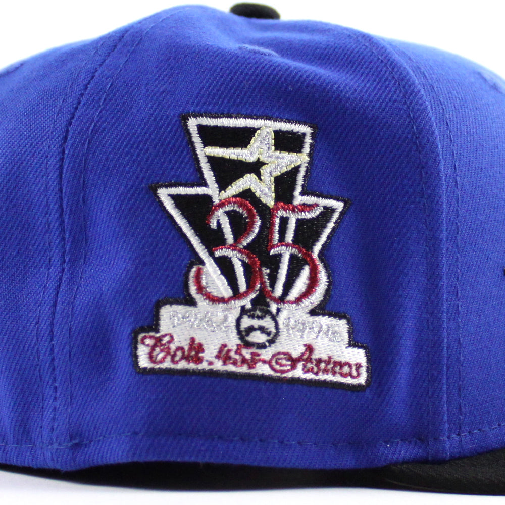 Houston Astros 35 Years New Era 59Fifty Fitted Cap in Majestic Blue, Black and Gray Under Brim.