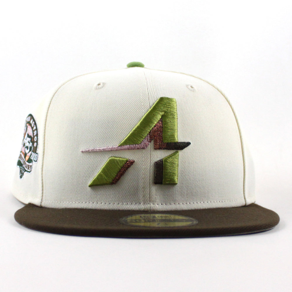 Houston Astros 45th Anniversary New Era 59Fifty Fitted Hat in Chrome White, Walnut and Gray Under Brim.