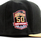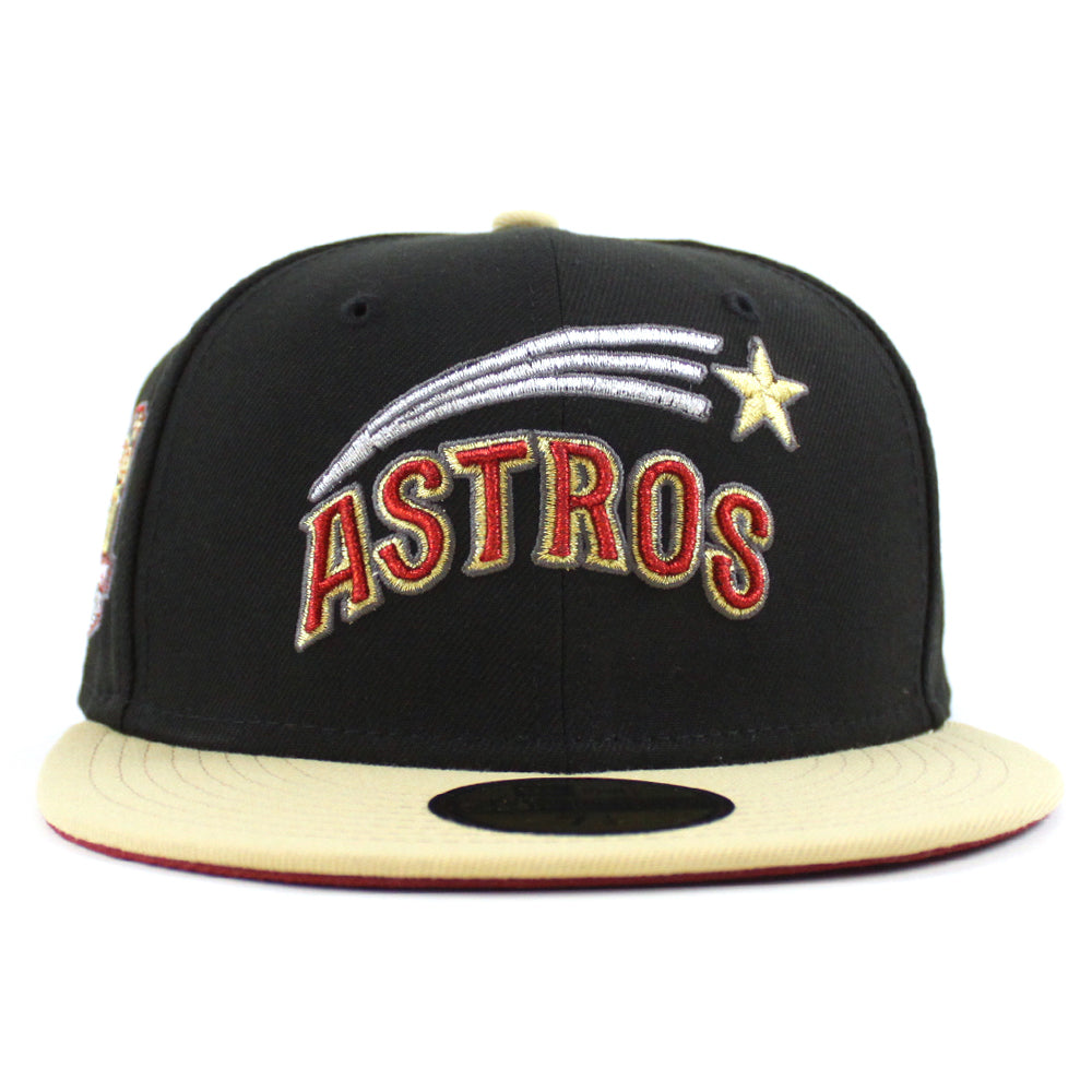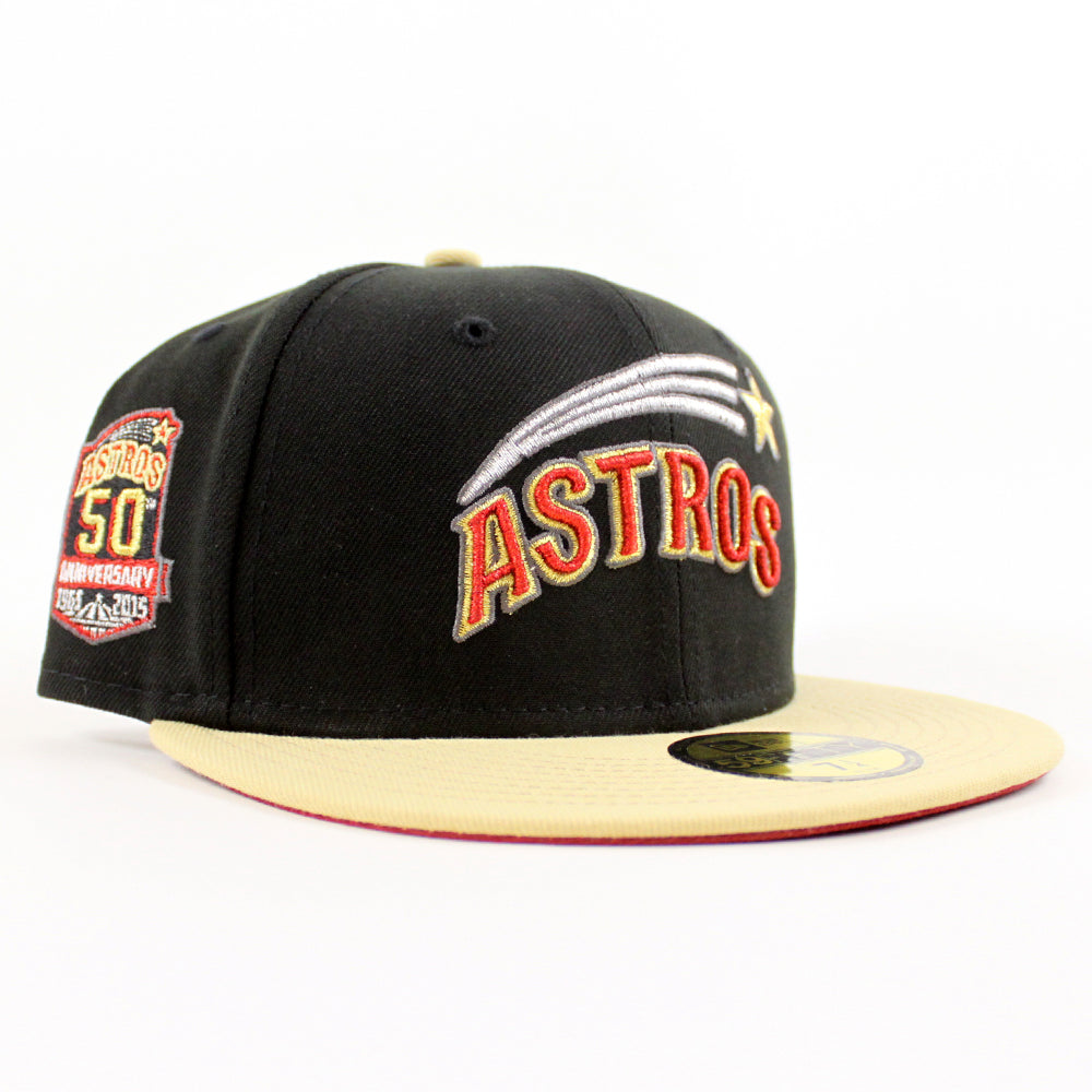 Houston Astros 50th Anniversary 1962-2012 New Era 59Fifty Fitted Cap in Black, Vegas Gold and Red Under Brim.