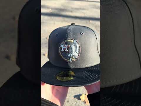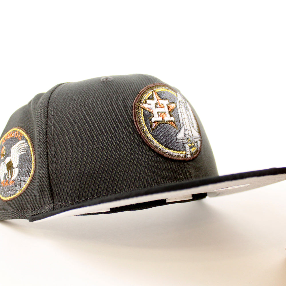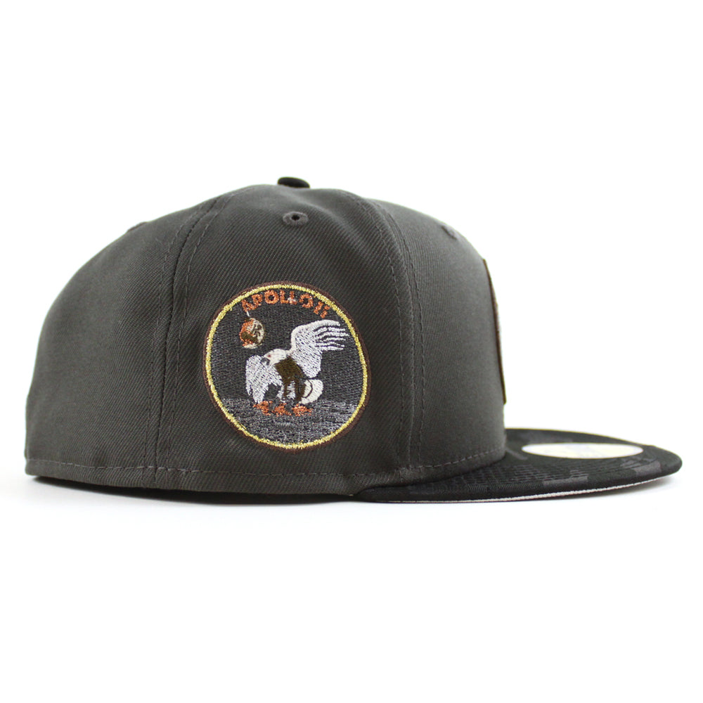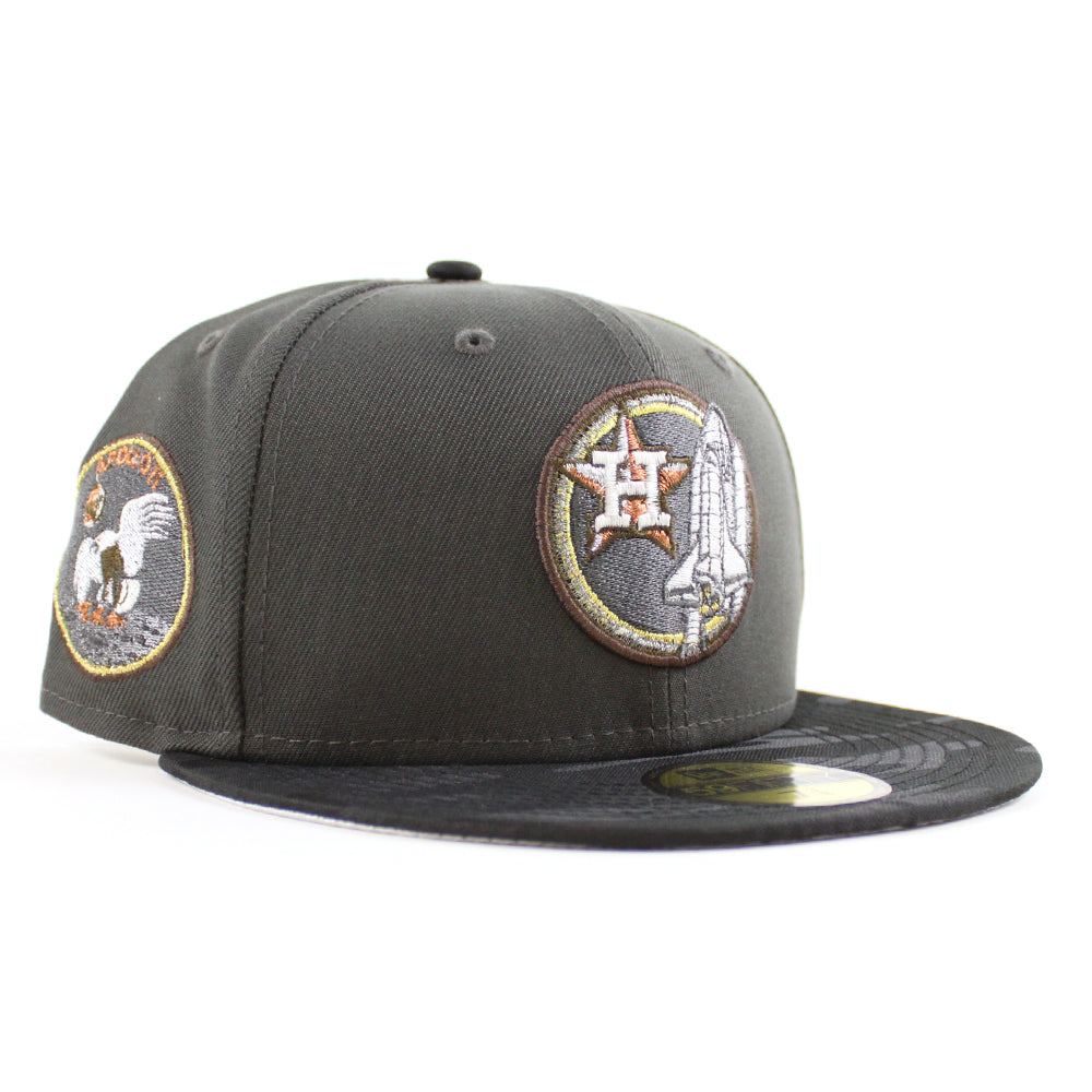 Houston Astros Apollo 11 New Era 59Fifty Fitted Cap in Pewter, JAQUARD TONAL CAMO BLACKย and Metallic Silver Under Brim.