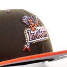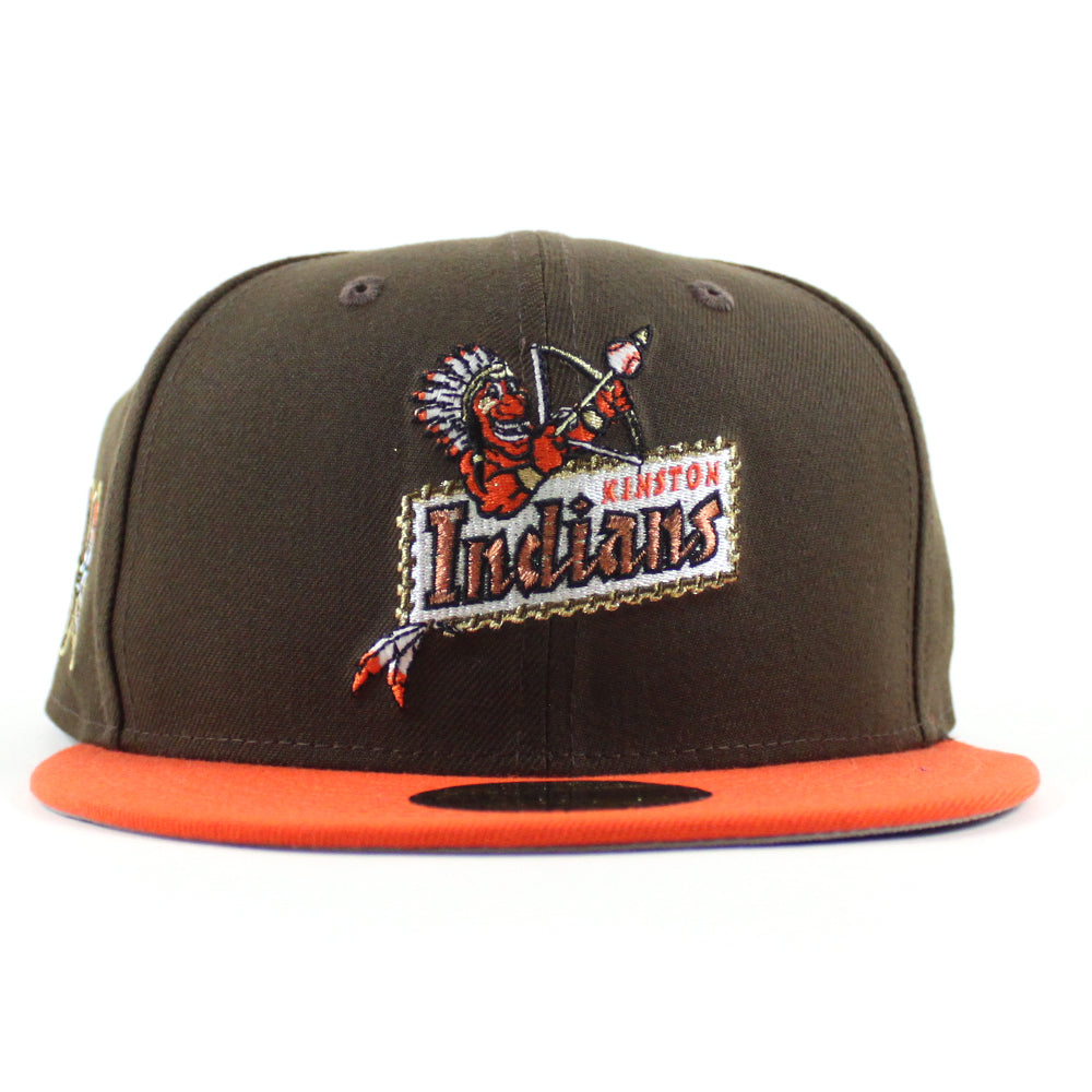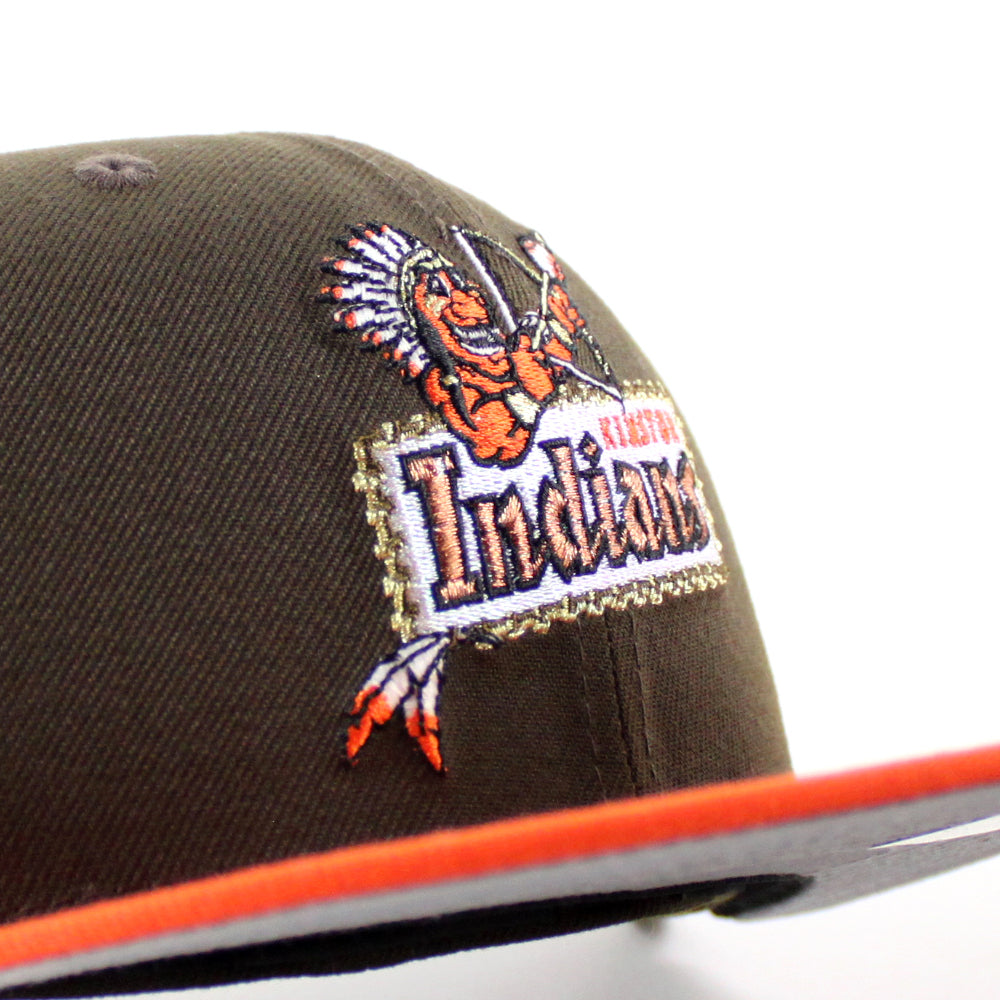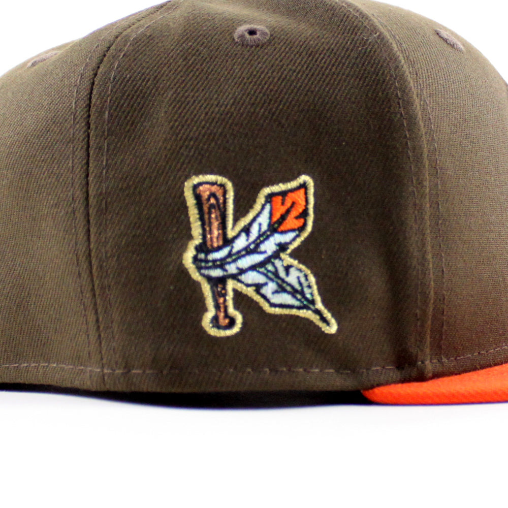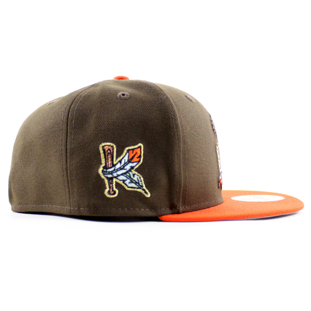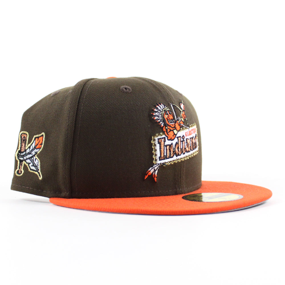 Kinston Indians Baseball Patch New Era 59Fifty Fitted Cap in Walnut, Orange and Gray Under Brim.