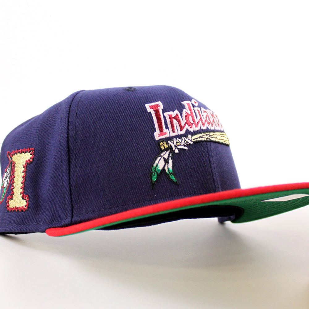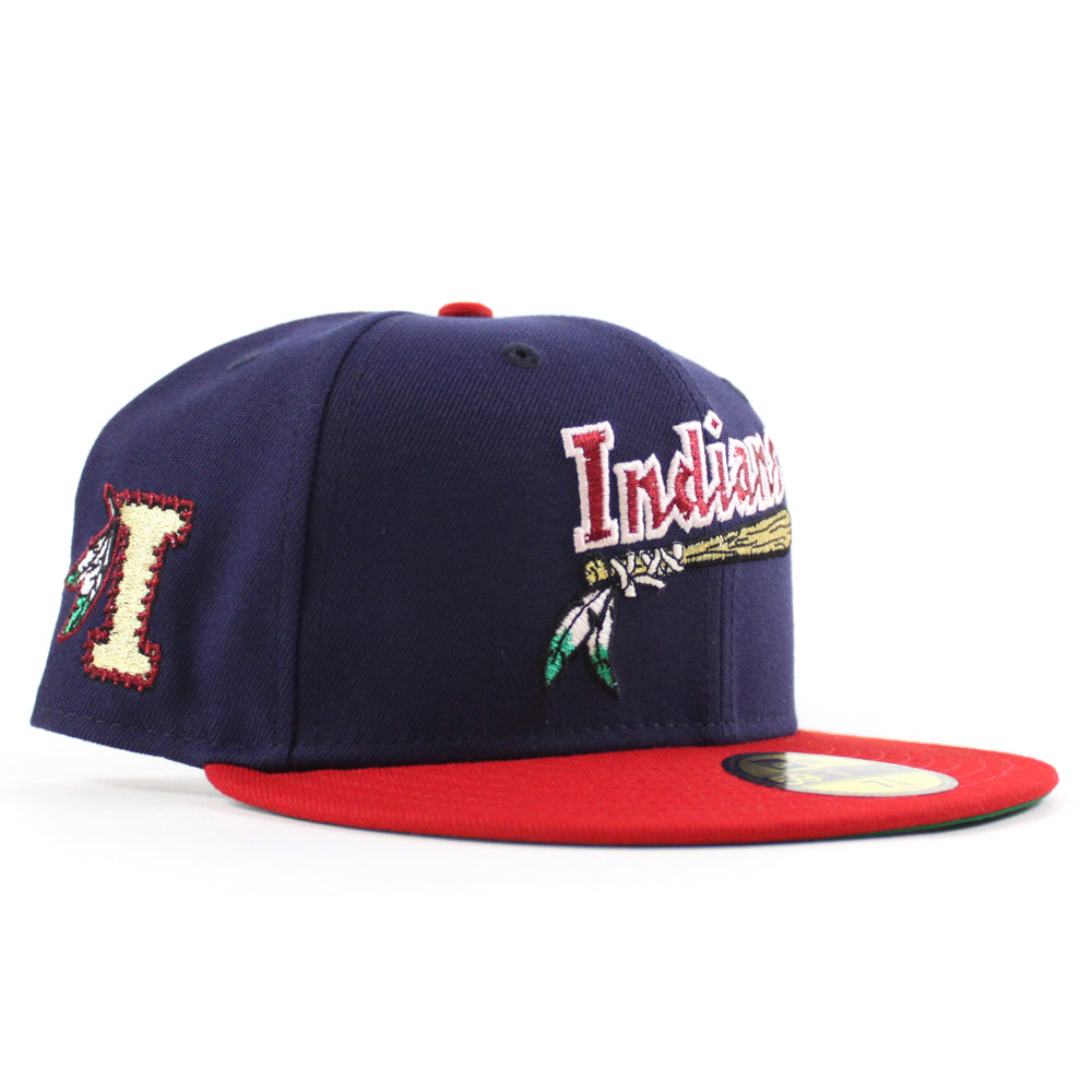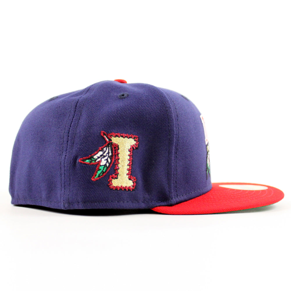 Kinston Indians Indians Patch New Era 59Fifty Fitted Cap in Navy, Scarlet Red and Green Under Brim.